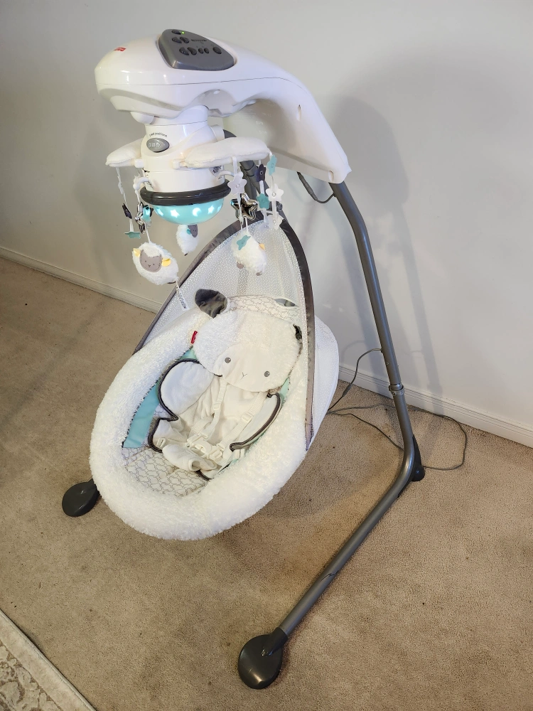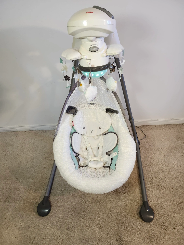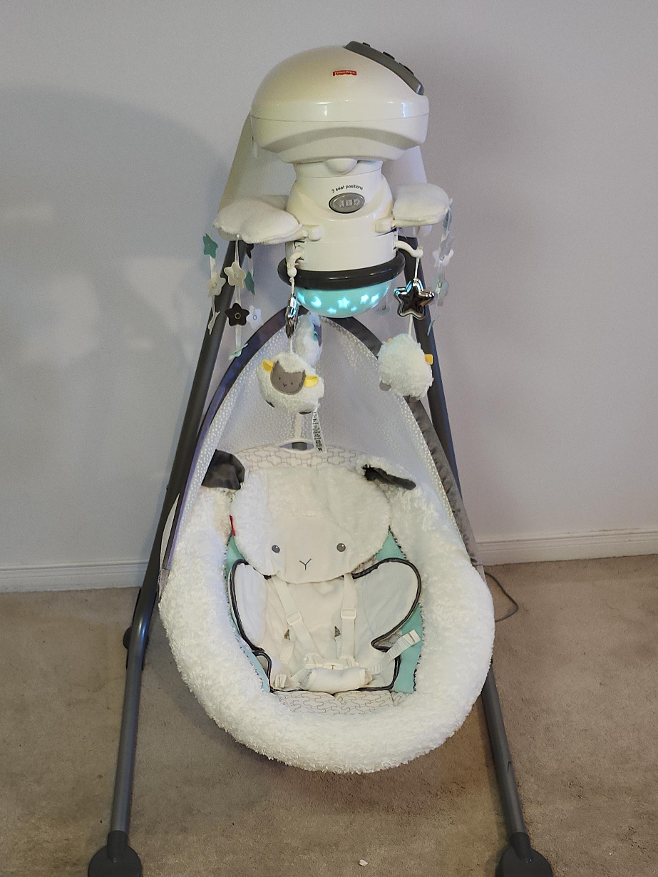 Selling a Fisher-Price Sweet Snugapuppy Dreams Cradle 'n Swing! It's perfect for soothing your little one with gentle motions and sounds. The swing features a cozy seat with a plush puppy insert and overhead mobile with soft toys to entertain baby. It has 3 seat positions several singles with control the sounds, Nature sounds, several speed for swing.Washable Cover Also has night light Pickup location Near Yonge and Sheppard