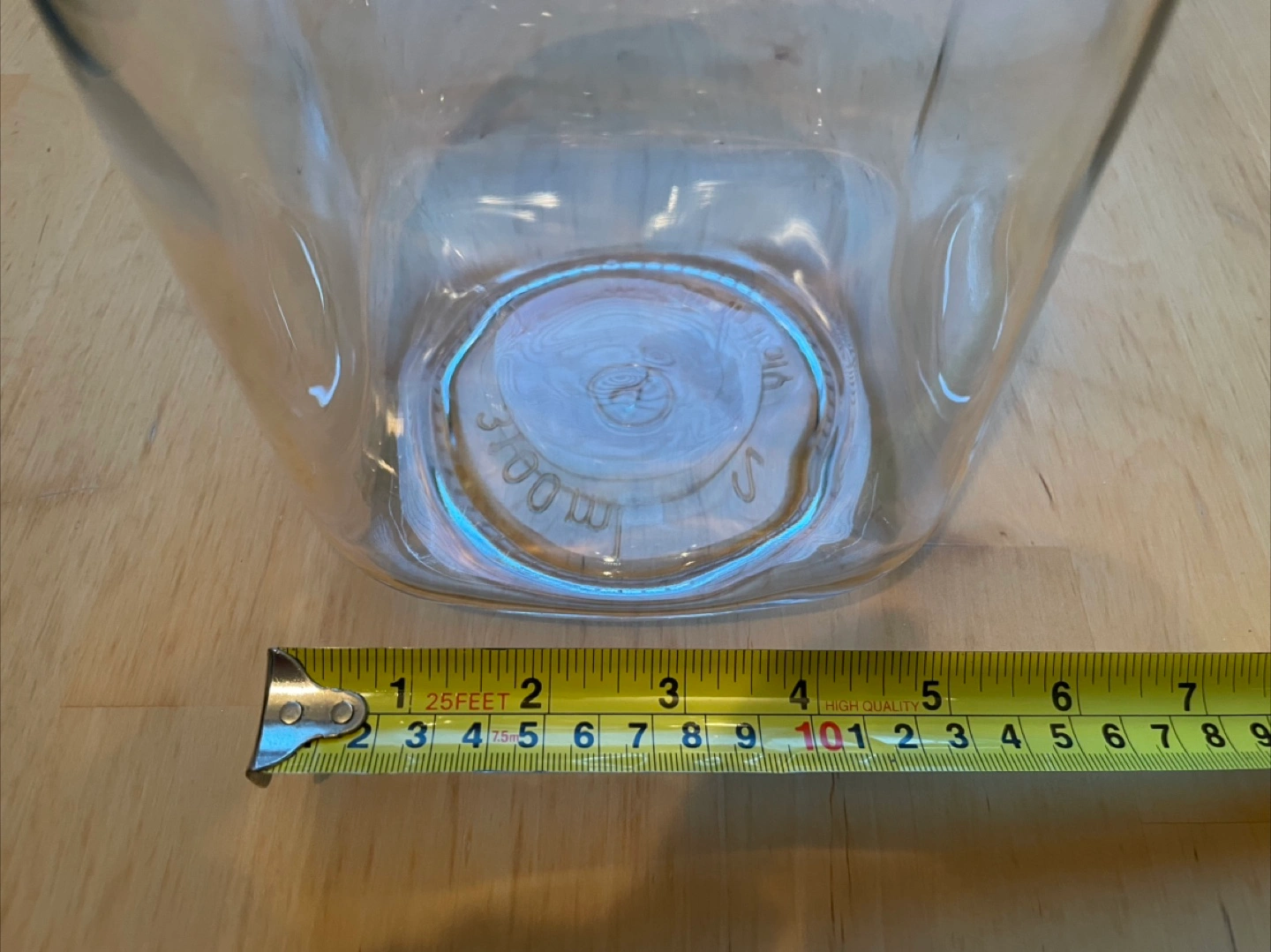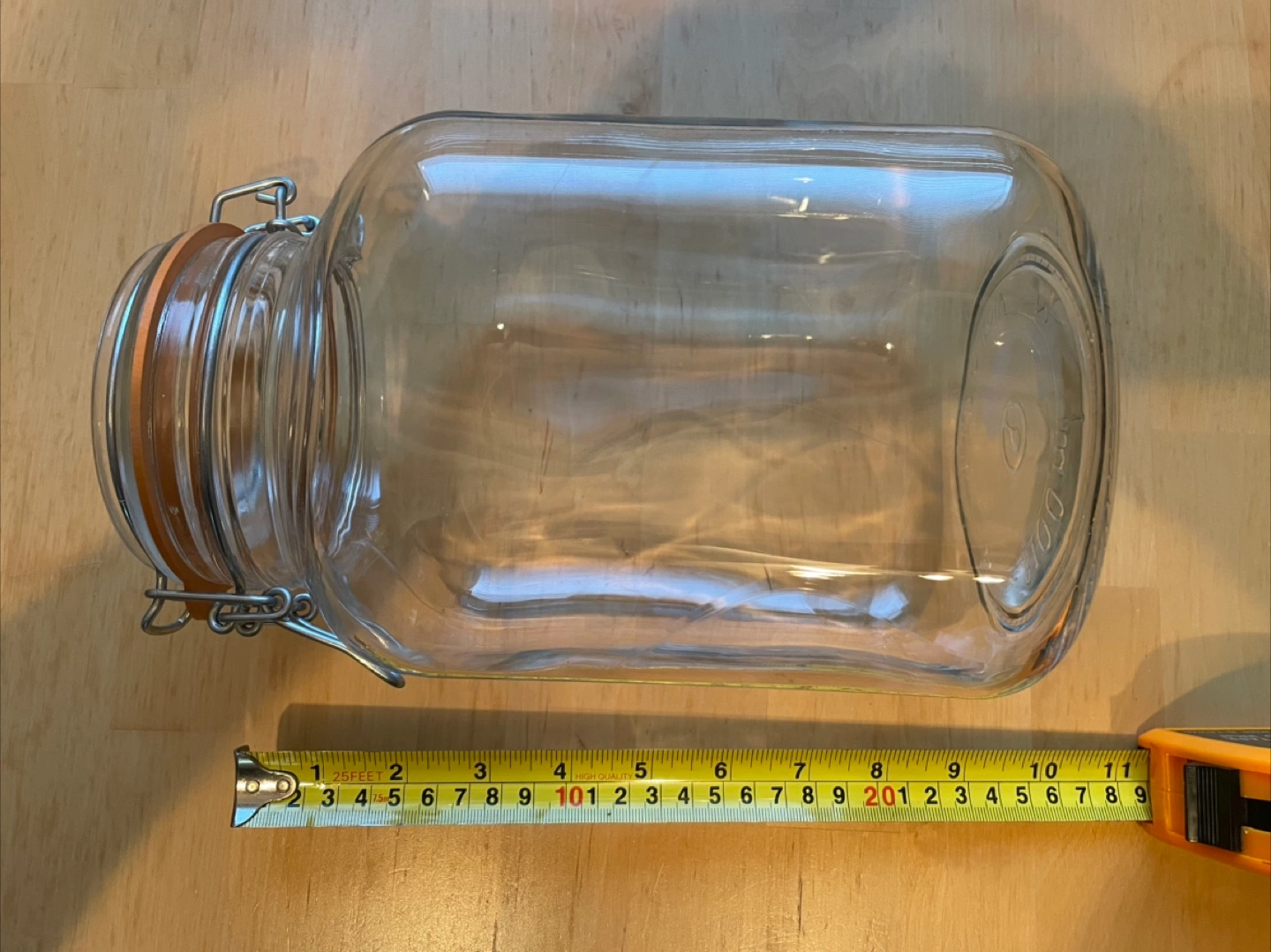 Large glass mason jar for sale. Holds 3100ml (or 3.1 L). Measurements of size are in the photos. These are normally selling for $30 on amazon. Selling this one for $10.