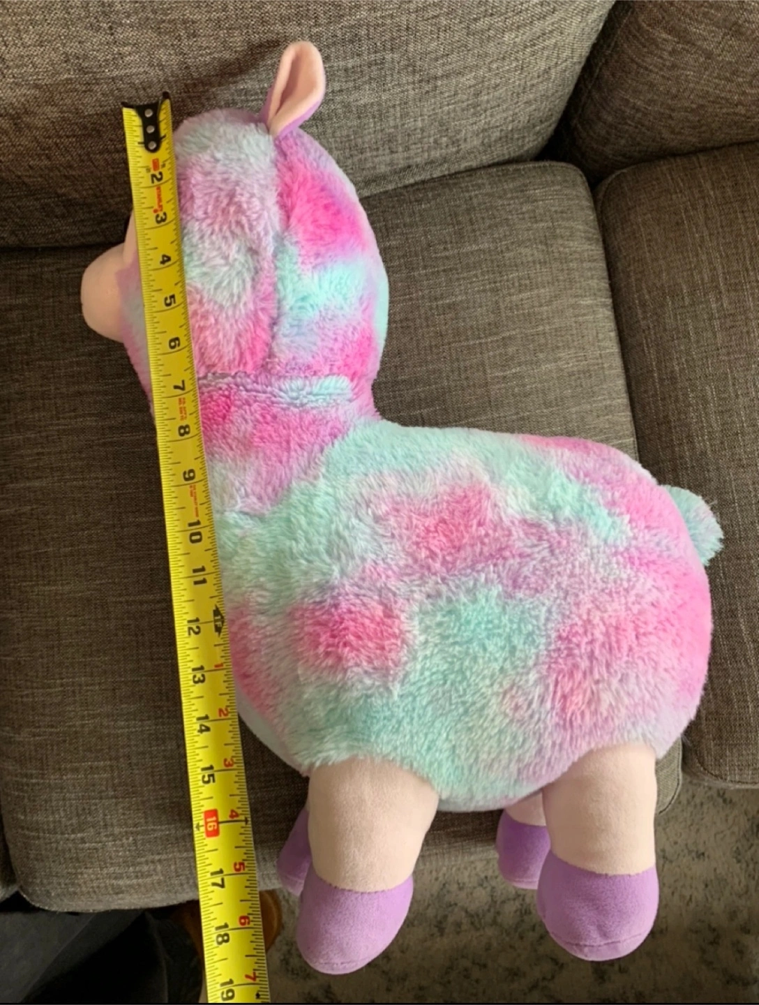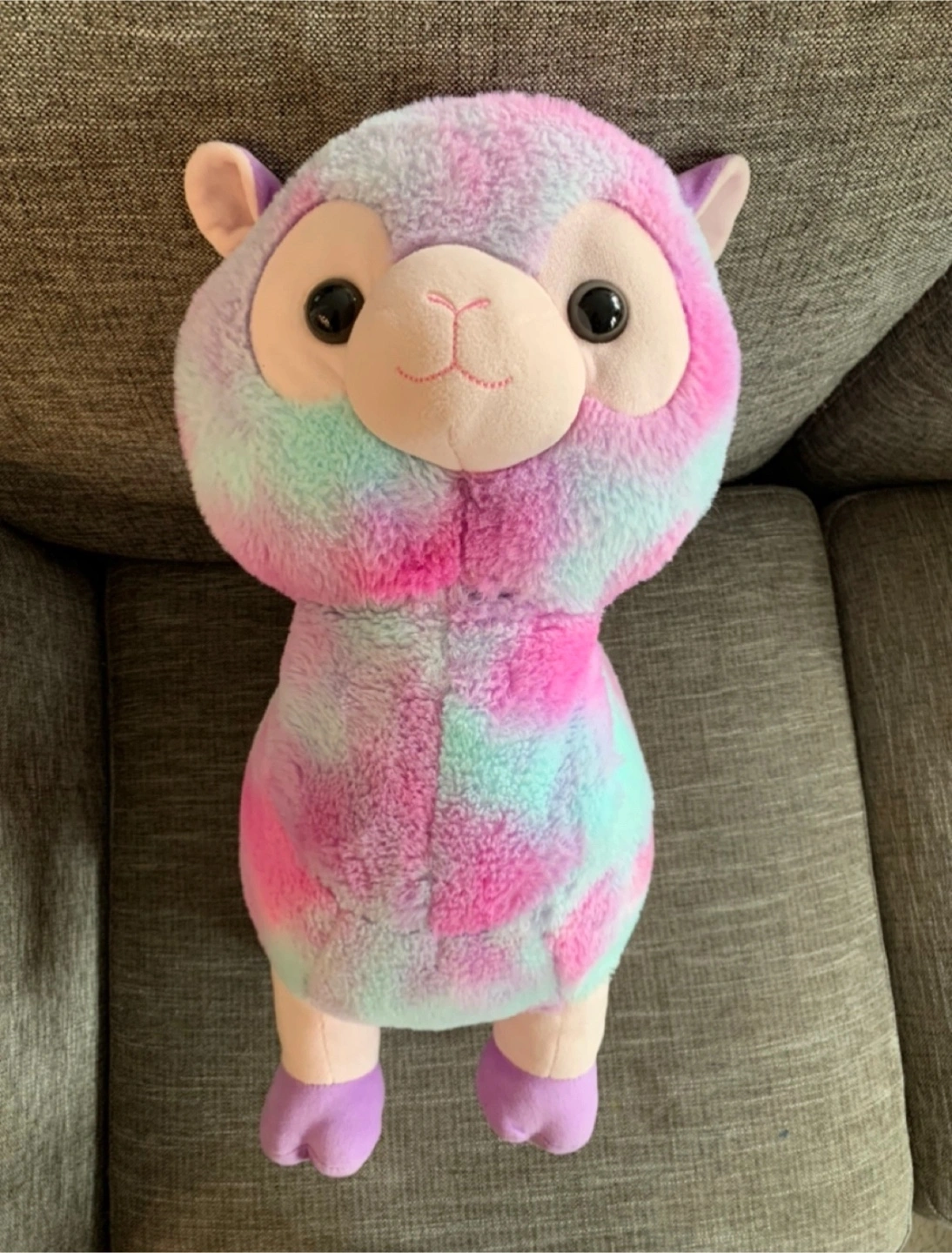 Soft and cuddly llama plush toy in a mix of pink, purple, and teal. Super cute!!🥰 From a smoke-free, pet-friendly home.
