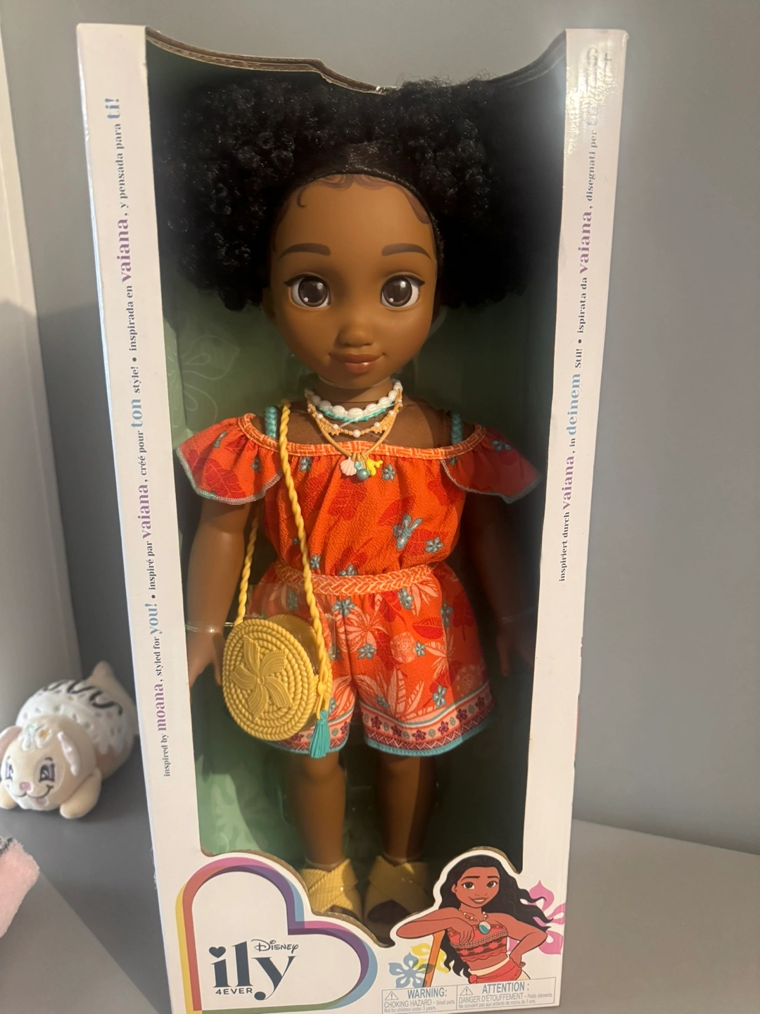 Selling a brand new Disney ILY 4EVER doll inspired by Moana! It's still in its original box and ready for a new home. This doll is styled with an adorable outfit and accessories that capture the spirit of Moana. Perfect for any Disney fan or doll collector!