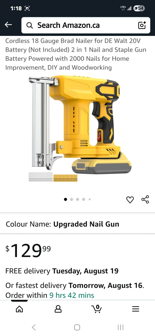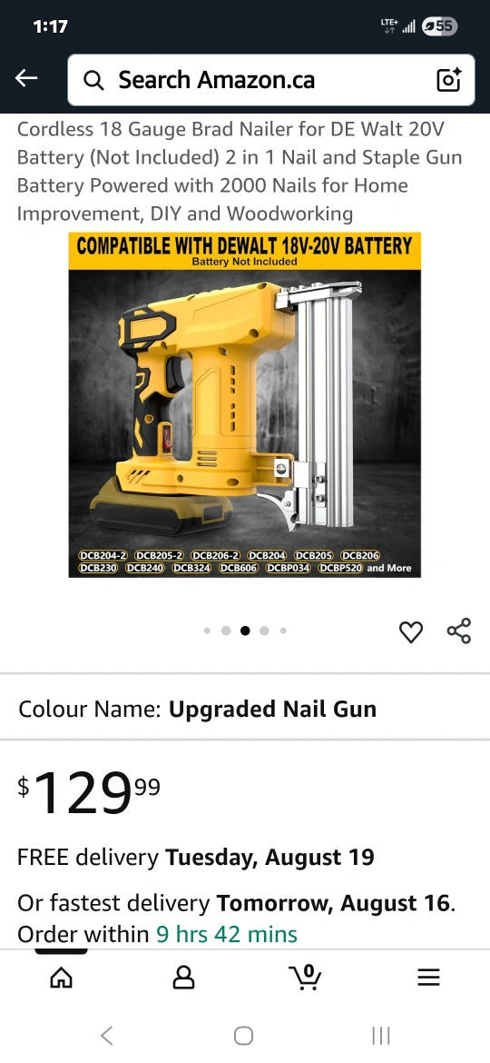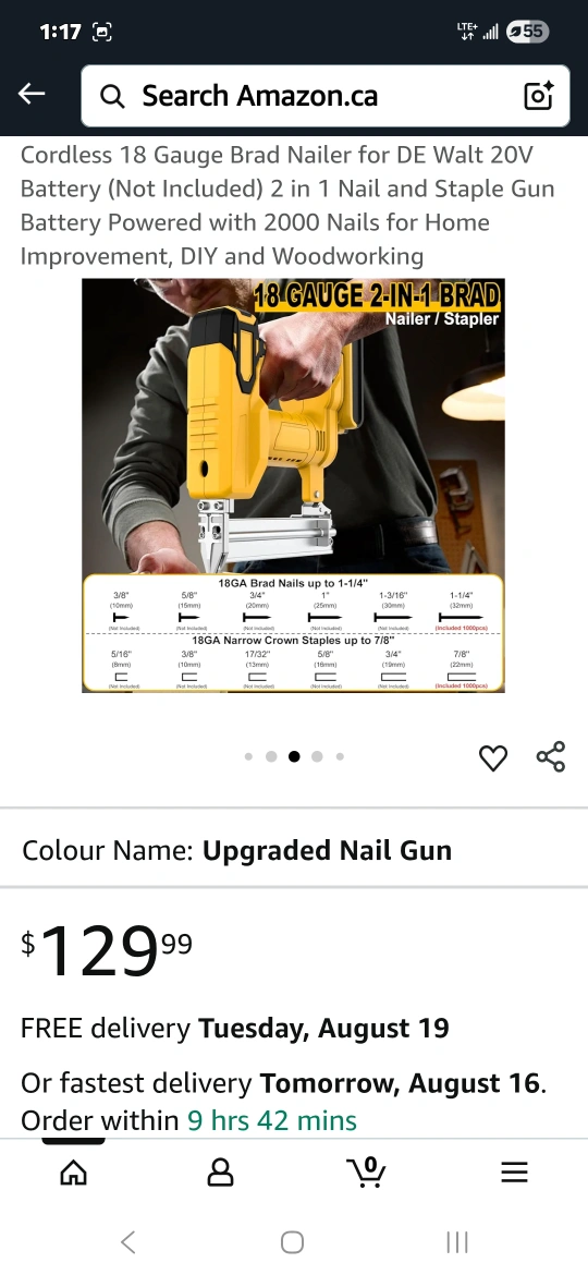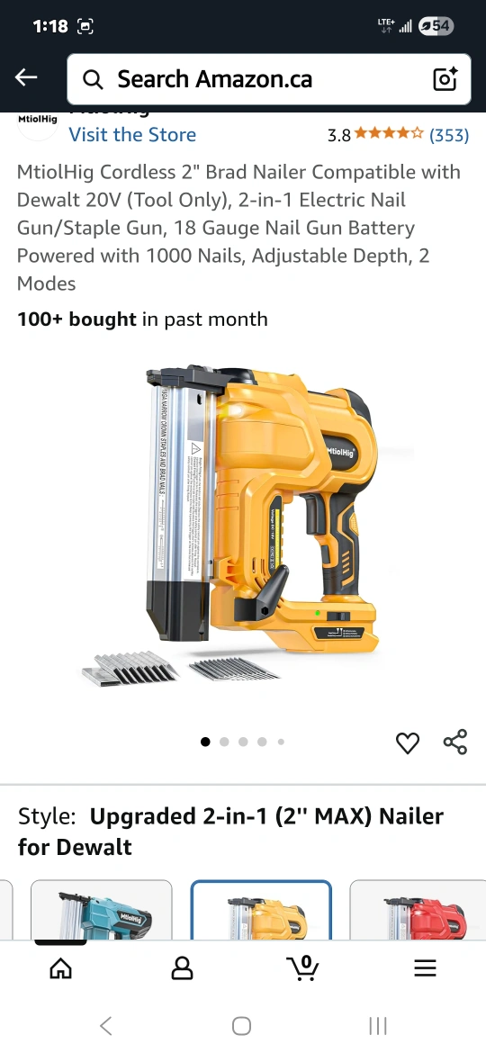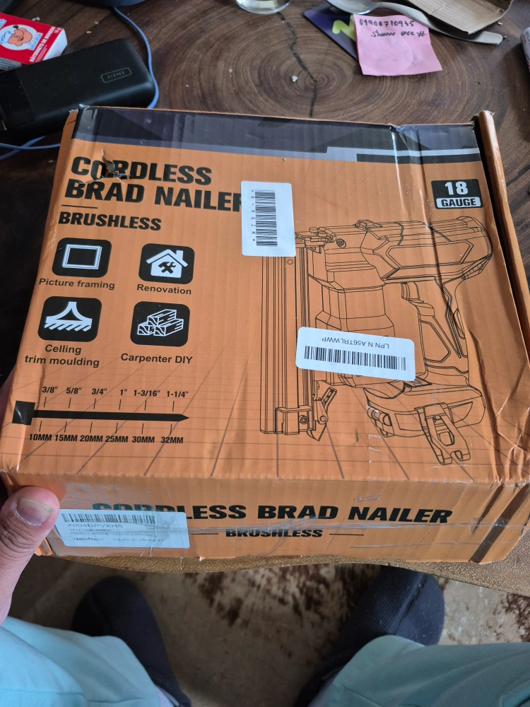 Selling a MtioHlg cordless 2" brad nailer. It's in like-new condition and comes with the original box and instruction manual. This 2-in-1 electric nail gun/staple gun is compatible with Dewalt 20V batteries (battery not included). Perfect for picture framing, renovation, ceiling trim moulding, and other carpentry DIY projects!