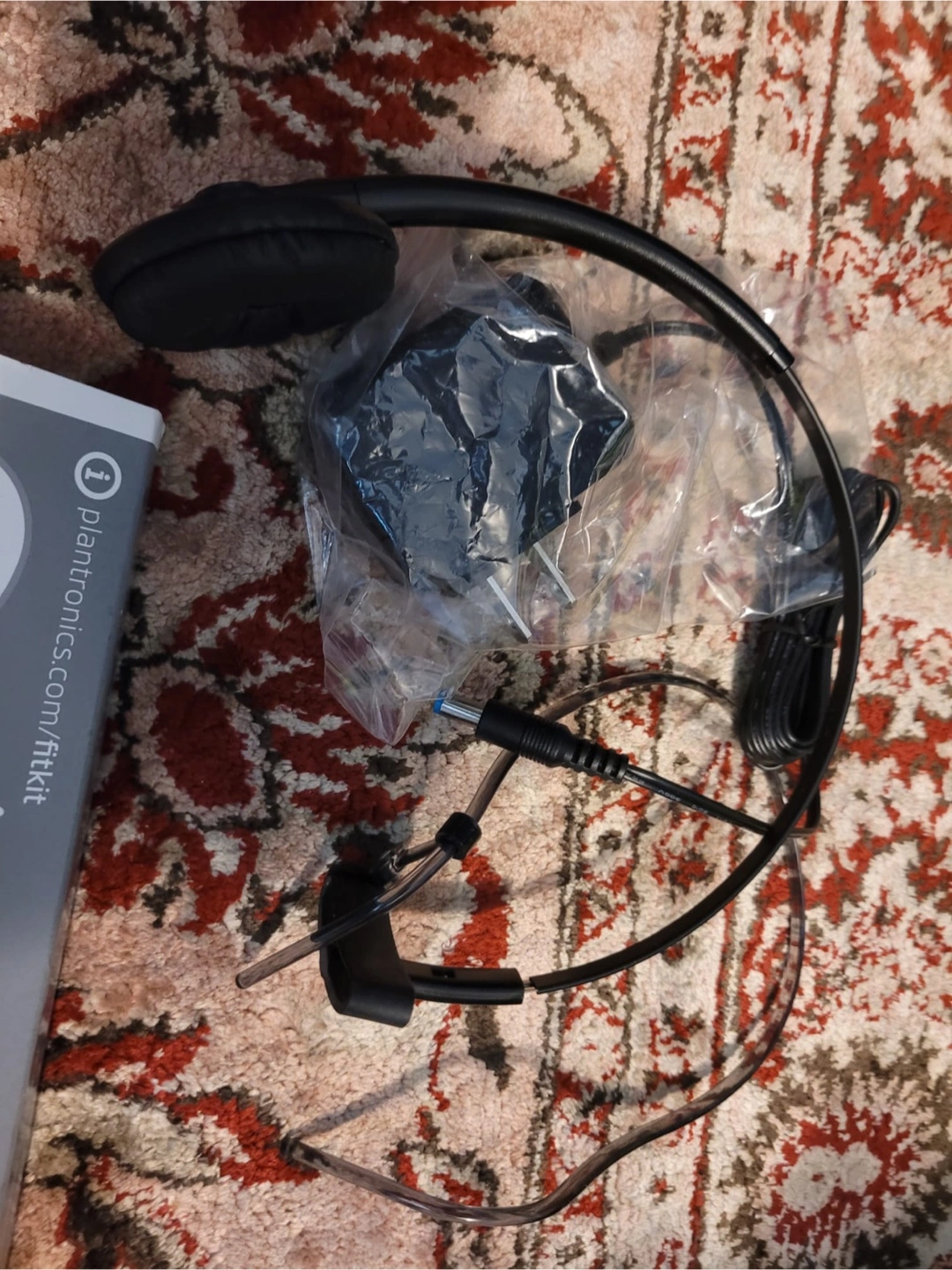 Selling a Poly (formerly Plantronics) W8200OB wireless headset system. It comes with the base station, headset, and various accessories including ear tips and a fit kit. Perfect for office or home use!