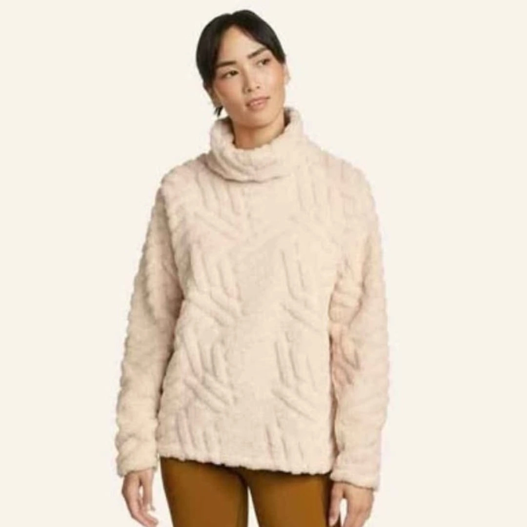 **BRAND NEW- NEVER BEEN WORN** Was going to be a gift but ordered wrong size Eddie Bauer Woman's Quest Plush Mock Neck Fleece - Textured Size: Extra Small [XS] Colour: Ivory Details: Made of our soft Quest Plush fabric Raglan sleeves Elasticized cuffs Mock neck for additional warmth Material and Care: 100% polyester Imported Turn garment inside out Machine wash cold, separately Only non-chlorine bleach as needed Do not use fabric softeners Tumble dry low Do not iron Do not dry clean Relaxed: A casual fit, easy through the body Length: 26" $50 obo Pickup in Clayton Heights, cash only