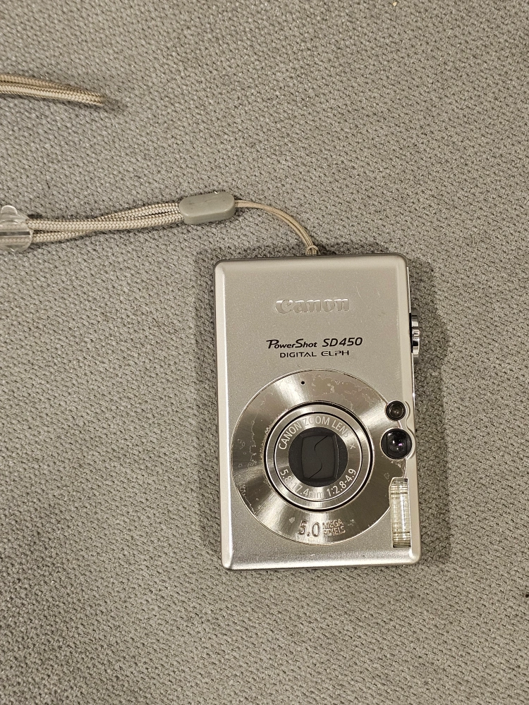 Selling a Canon PowerShot SD450 Digital ELPH camera! It's a compact little camera that's easy to take with you. It has a 5.0 mega pixels. one memory card. one battery. No charger CHECK MY OTHER