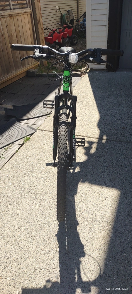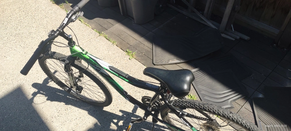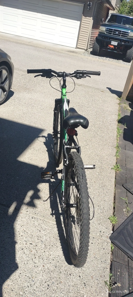 This mountain trail bike is, lightweight aluminum-frame hardtail mountain bike, ideal for both trail and city riding. Originally purchased for $199, it has been gently used for only about five months before being stored indoors for a bit too long and from that it got rusted and chains got stuck but I repaired it and now it runs smoothly with good brakes. The only problem that this bike has is the gears which will only sift from 7 to 4. Which is why I think 90 is a good price to sell it for. Key features: Aluminum Frame – Lightweight yet strong for easy handling and durability 27.5-inch Wheels – Perfect balance between speed and maneuverability Front Suspension Fork – Helps absorb bumps for a smoother ride 21-Speed Drivetrain – Smooth gear shifting (currently shifts between 7th and 5th gear; other gears can be tuned if desired) Powerful Brakes – Excellent stopping power, recently checked and fully functional Comfort Saddle – Ergonomic seat design for longer rides Trail-Ready Tires – Good tread for both on- and off-road conditions
