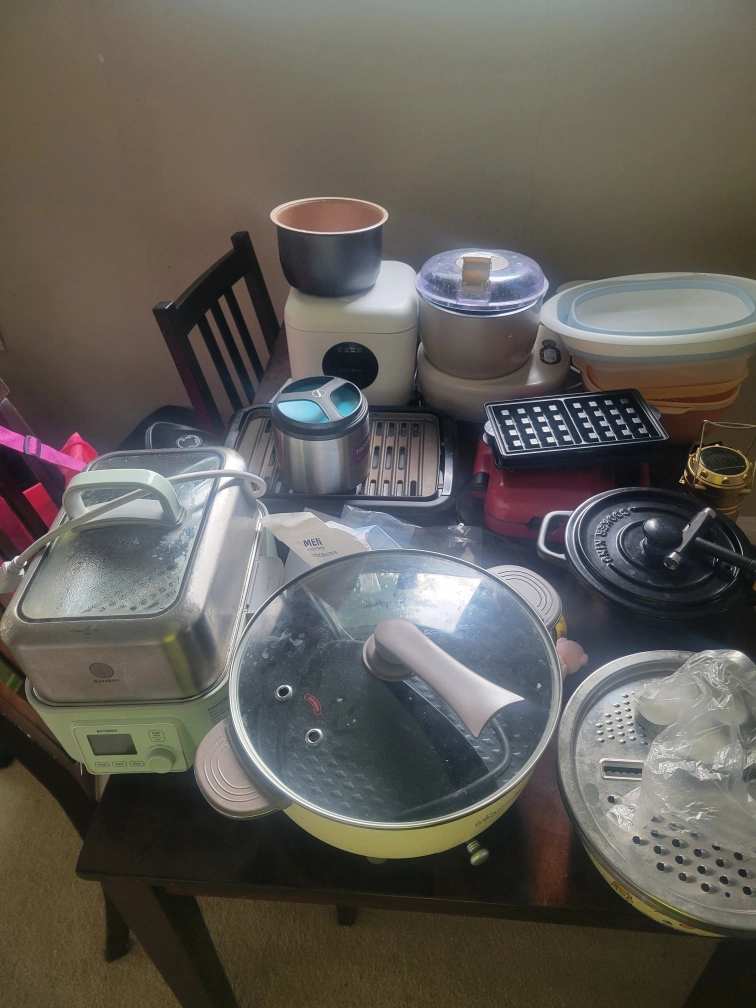 please connect with me ask me a offer Selling a variety of household items, including furniture, kitchenware, and storage solutions. Please take a look at the pictures to see what's included