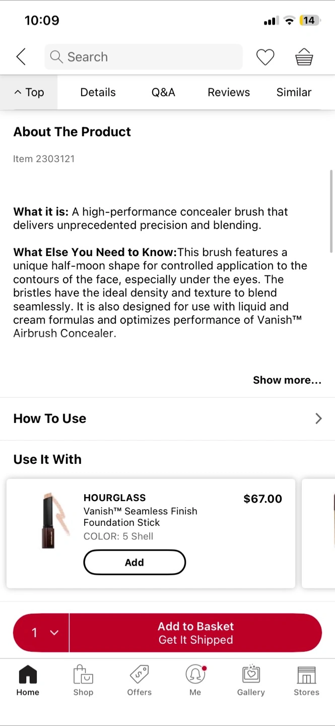 Selling a HOURGLASS Vanish Seamless Finish Concealer Brush. This high-performance concealer brush delivers unprecedented precision and blending. It features a unique half-moon shape for controlled application to the contours of the face, especially under the eyes. The bristles have the ideal density and texture to blend seamlessly. It is also designed for use with liquid and cream formulas and optimizes performance of Vanish™ Airbrush Concealer Original retail price $55.00 DM for more meet up details, i offer shipping, meet ups and pick up