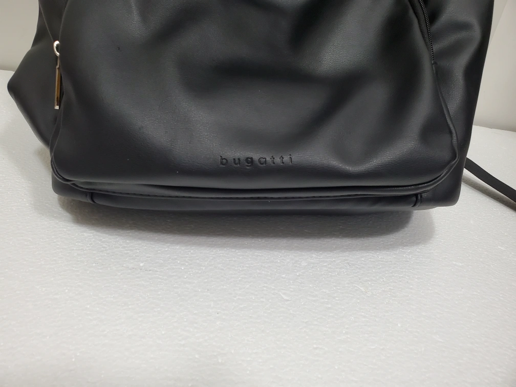 ■Selling a Bugatti leather backpack in black. It's in great condition and ready for a new owner! * Back padded section with dual zipper stores laptop up to 15.6 inches. * 2 side pockets for water bottle or umbrella. * Sells for $129.99 at Staples ● SMOKE-FREE/PET-FREE HOME