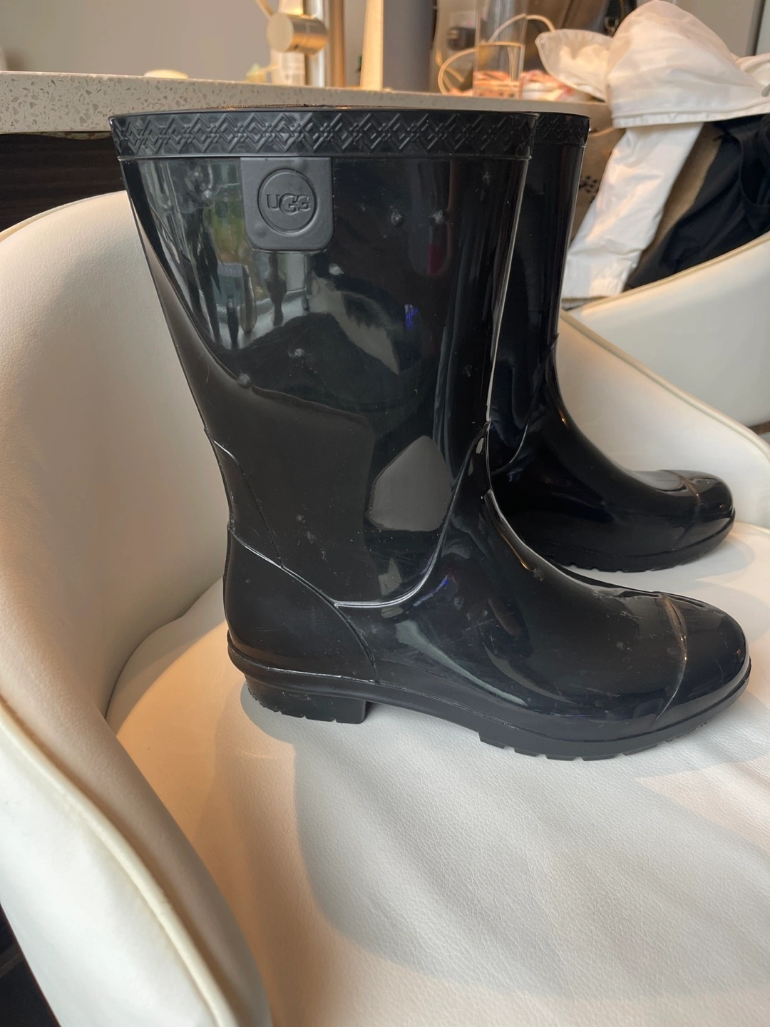Selling a pair of UGG Shaye rain boots in black! Number 8us