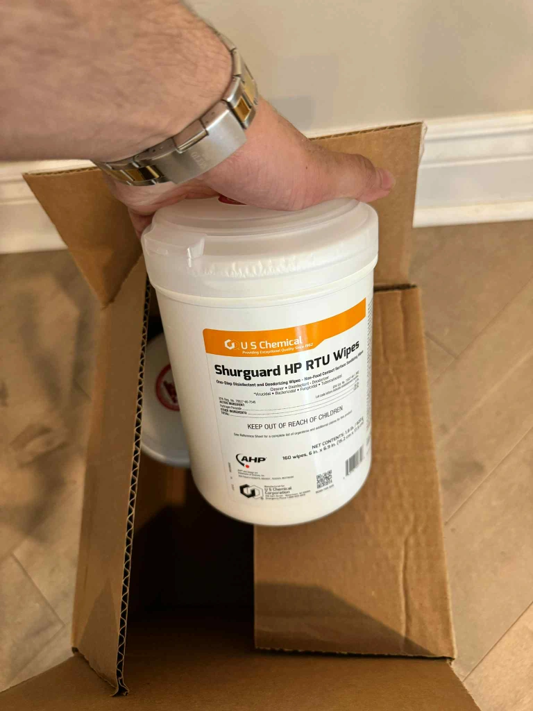 Hey everyone ๐ Iโm closing my side cleaning business and have some extra cleaning products left over. Everything is brand new and discounted. If you need supplies for home, office, or business, this is a good chance to save. Send me a message for the list! Selling Shurguard HP RTU Wipes by US Chemical - One-Step Disinfectant and Deodorizing Wipes - Non-Food Contact Surface Sanitizer - Contains 160 wipes - Each wipe measures 6 x 6.9 in (16.2 cm)