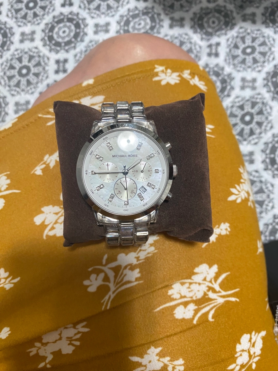 Selling a beautiful Michael Kors women's watch, model MK-5263. It's in great condition and comes with the original box. The watch is all stainless steel with a lovely mother-of-pearl face. A stylish addition to any outfit!
