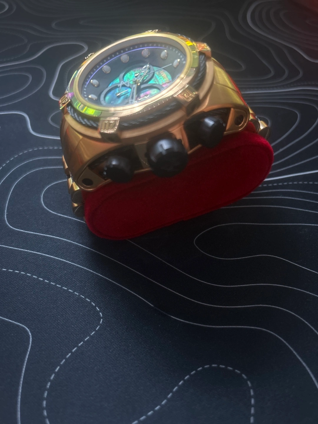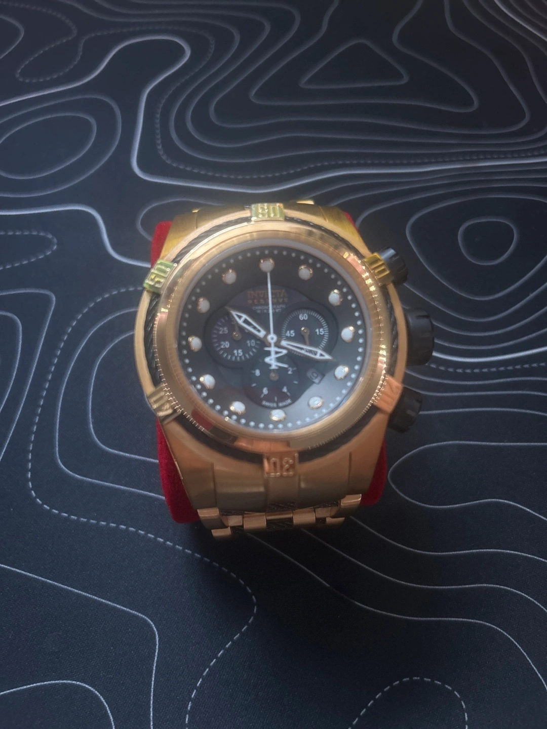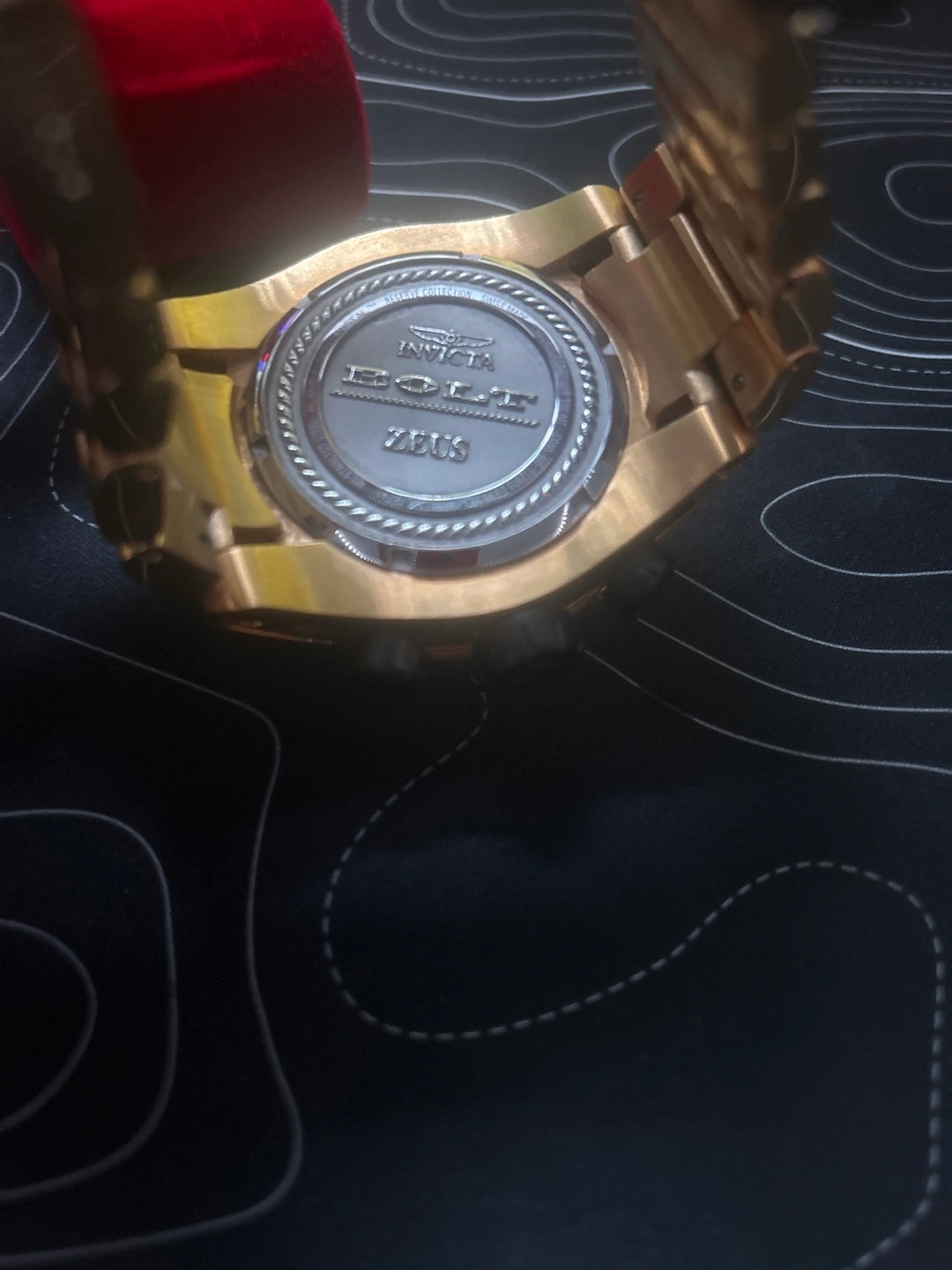 Selling a pre-owned Invicta Bolt Zeus watch! It's gold in colour and has a unique design. Please take a look at the photos for the condition.