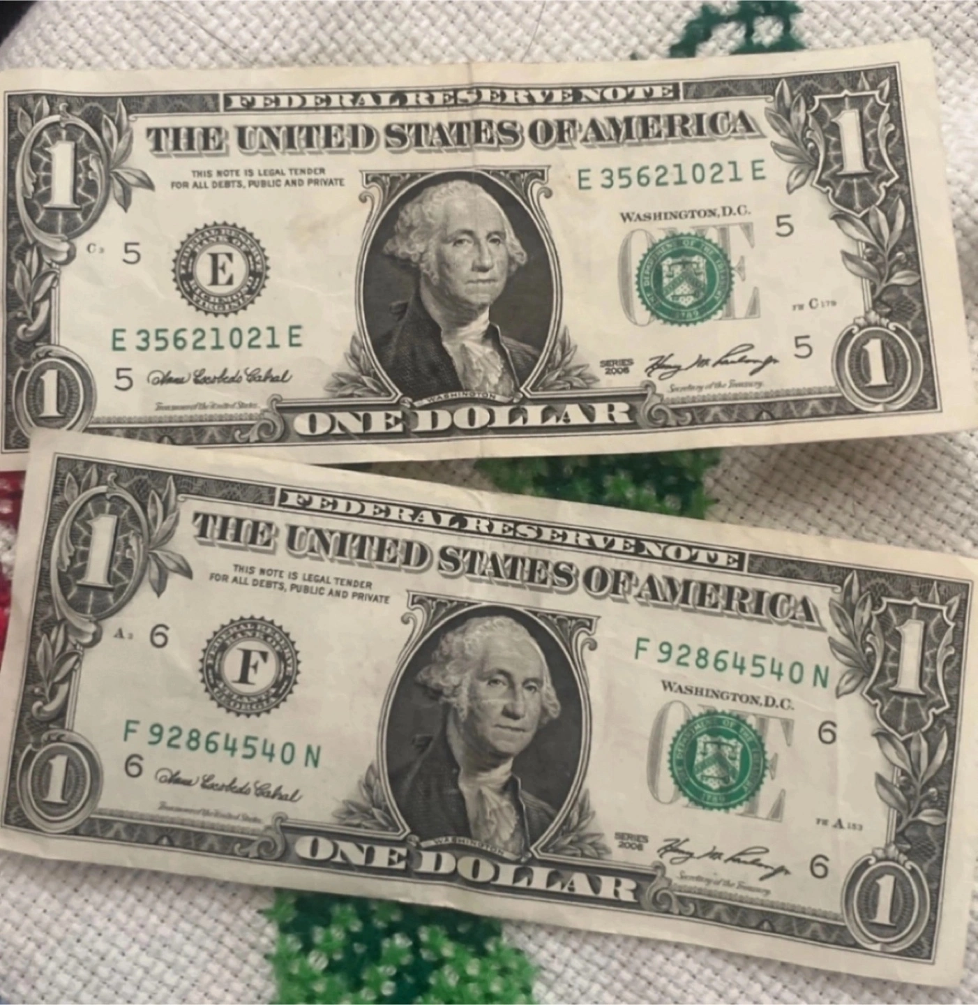I am selling the USA one dollar bills and Singapore two dollars bill both for 10 dollars only! If your interested message me right away ๐