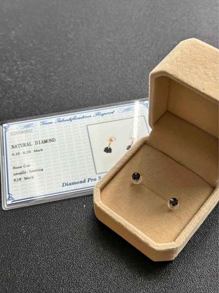 Metal: K18 Yellow Gold (Japan Setting) Style: Rose Cut Diamond: .50CT Natural Diamond Weight: Approx. ~0.208g Backing: Silicone Gold Includes: Certificate of Authenticity Available: K18 Yellow Gold Earring Nuts (Pair) – Additional $35