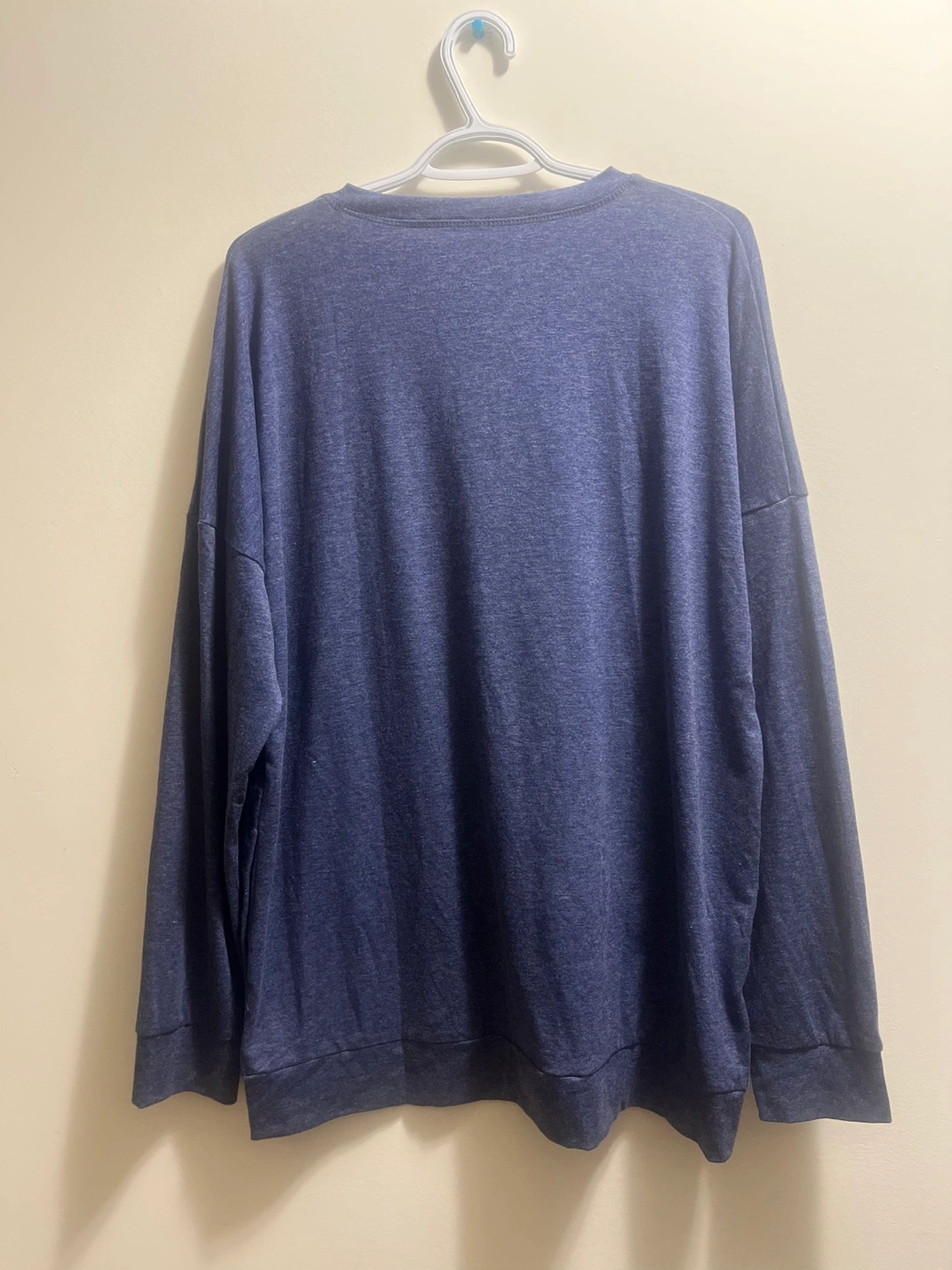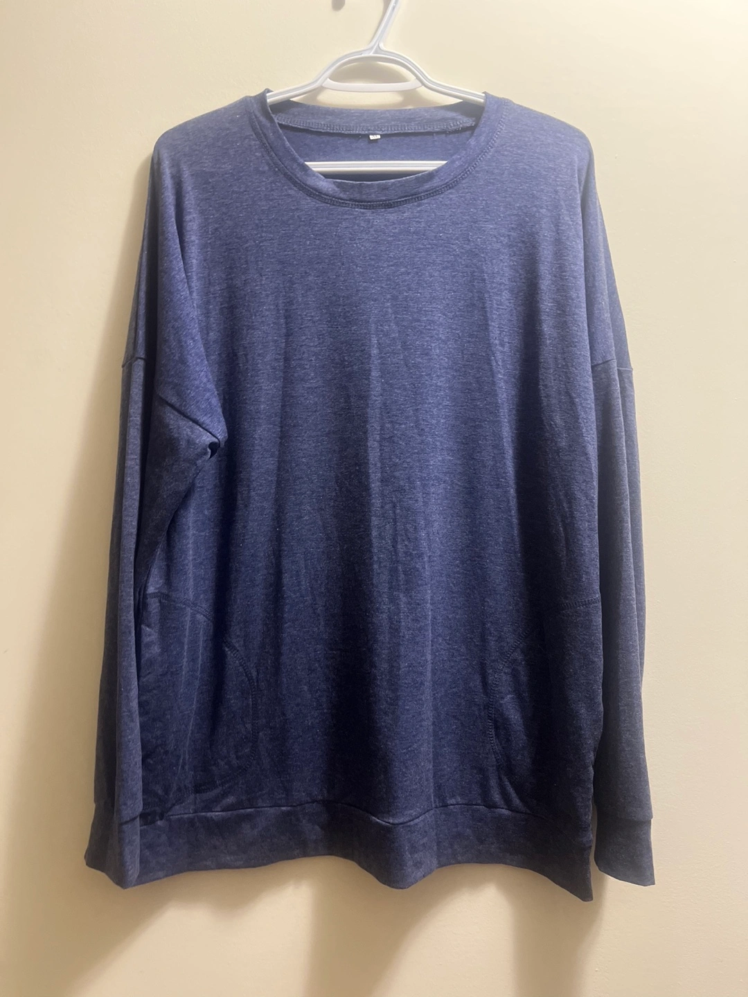Comfortable long sleeve shirt in a deep blue color. Pickup Brampton or downtown Toronto New condition, just washed and kept away Approximate PTP 27”-28” (has stretch)
