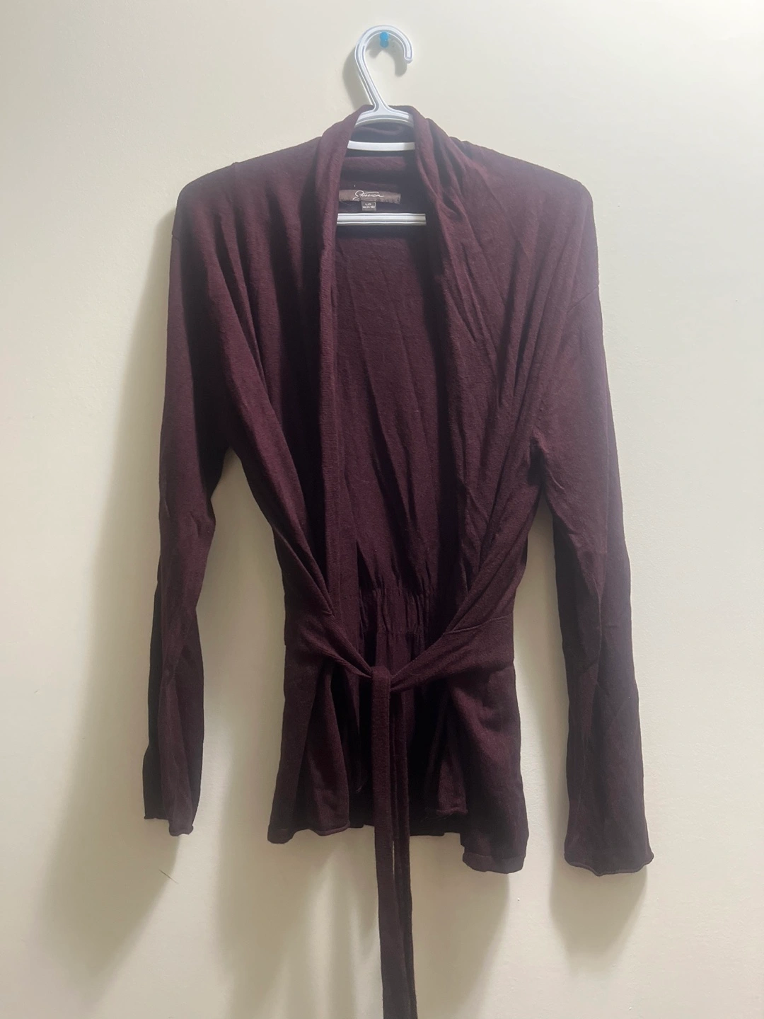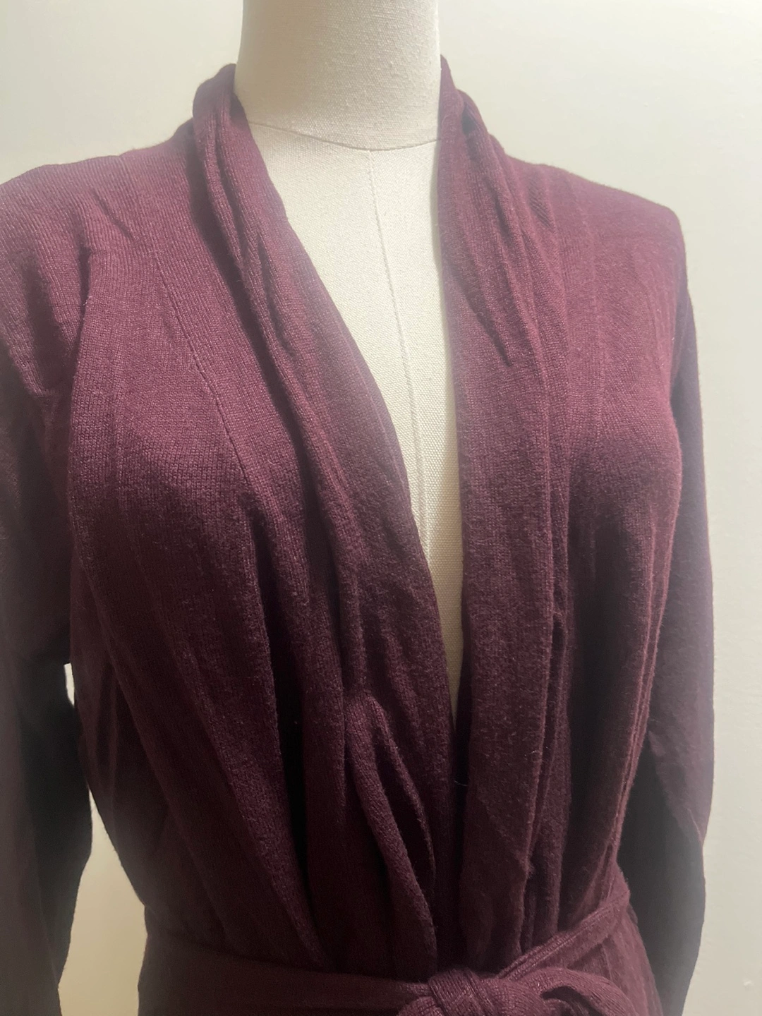 Elegant burgundy cardigan with open front and tie. Ideal for layering. Like new condition!! Pickup Brampton or downtown Toronto Approximate PTP 23”