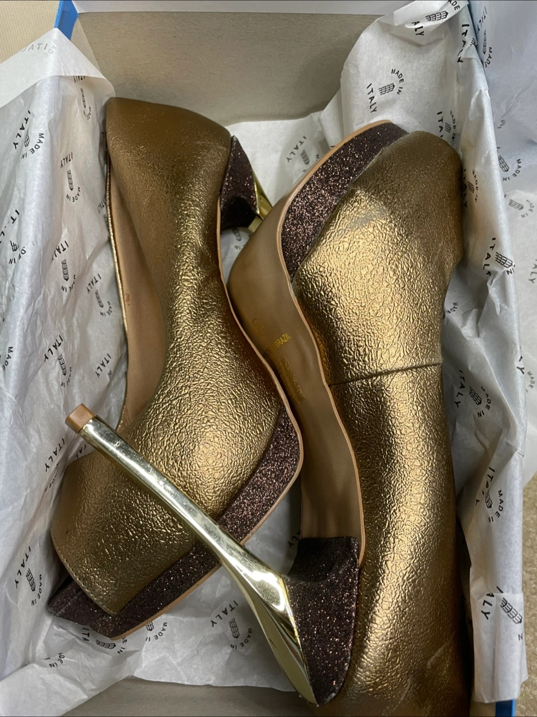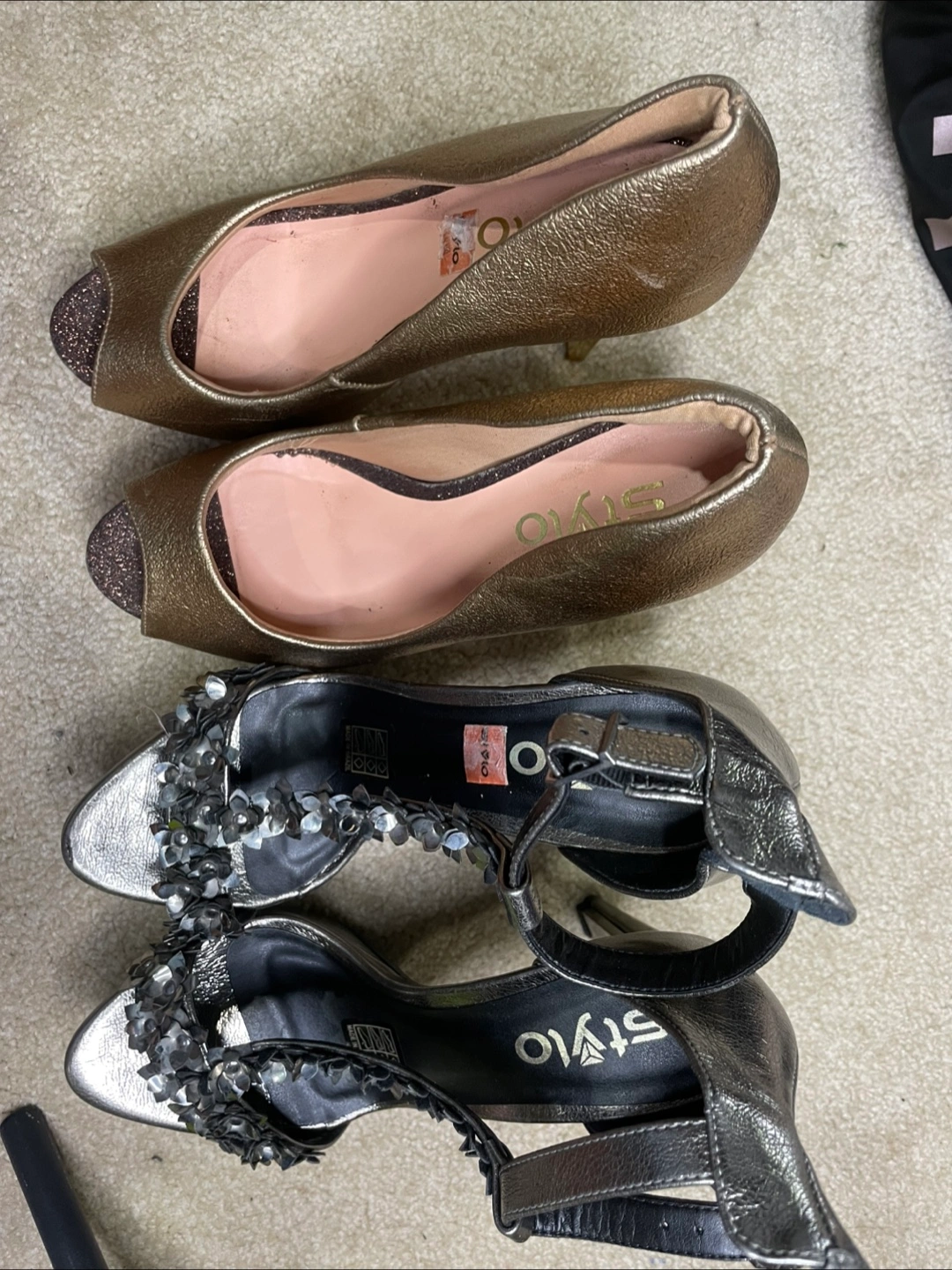 Selling a pair of Stylo gold heels. They are a size 7 (USA). These heels are perfect for a night out or a special occasion! They are in good condition and come with the original box