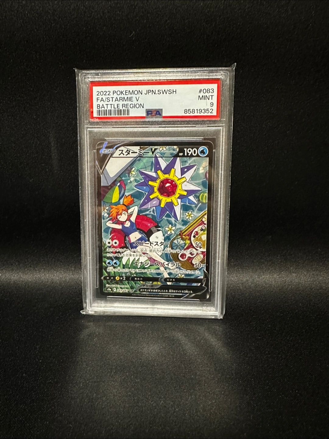 Selling a PSA graded Starmie V Pokemon card. It's PSA 9. Card is from the 2022 Pokemon JPN.SWSH Battle Region set, card number 083.