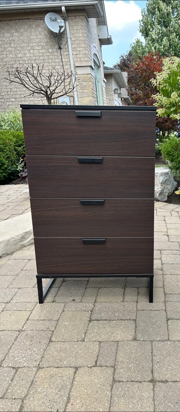 Selling an IKEA Trysil 4-drawer dresser. It's in great condition and ready for a new home! The drawers slide smoothly and the overall design is quite modern and sleek. - Great condition - Colour: Black-Brown - Dresser Dimensions D39", W23.5", H15.75"