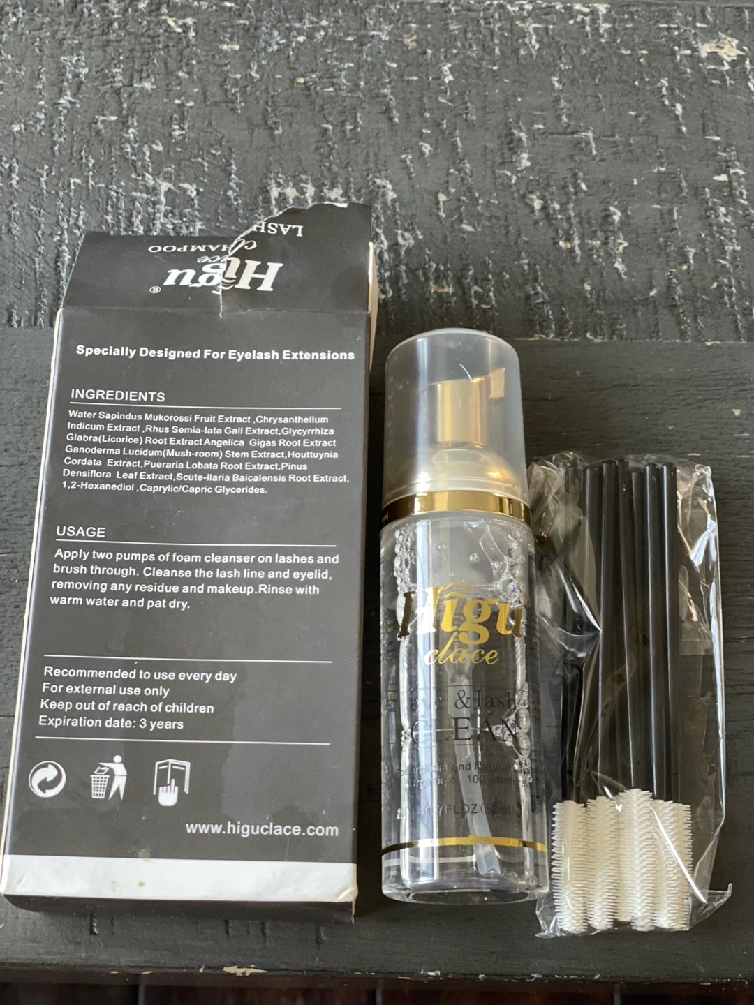 I'm selling Higu Clace Eye & Lash Foaming Clean Wash for artificial and natural lashes. It's organic and 100% natural. You get 1.7 FL OZ (50ml) x2. It also comes with the box