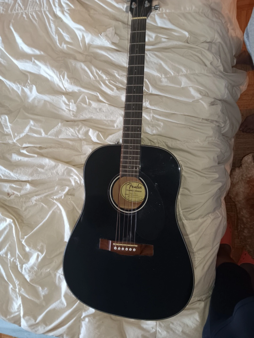 Selling a Fender acoustic guitar in black. It's in good condition and ready for a new home. refurbished one string needs to be tightened . comes with case Pic and another tool Great for beginners or experienced players alike! comes with case Pik and another item . 647-203-0411 asking $1 80 or BEST OFFER