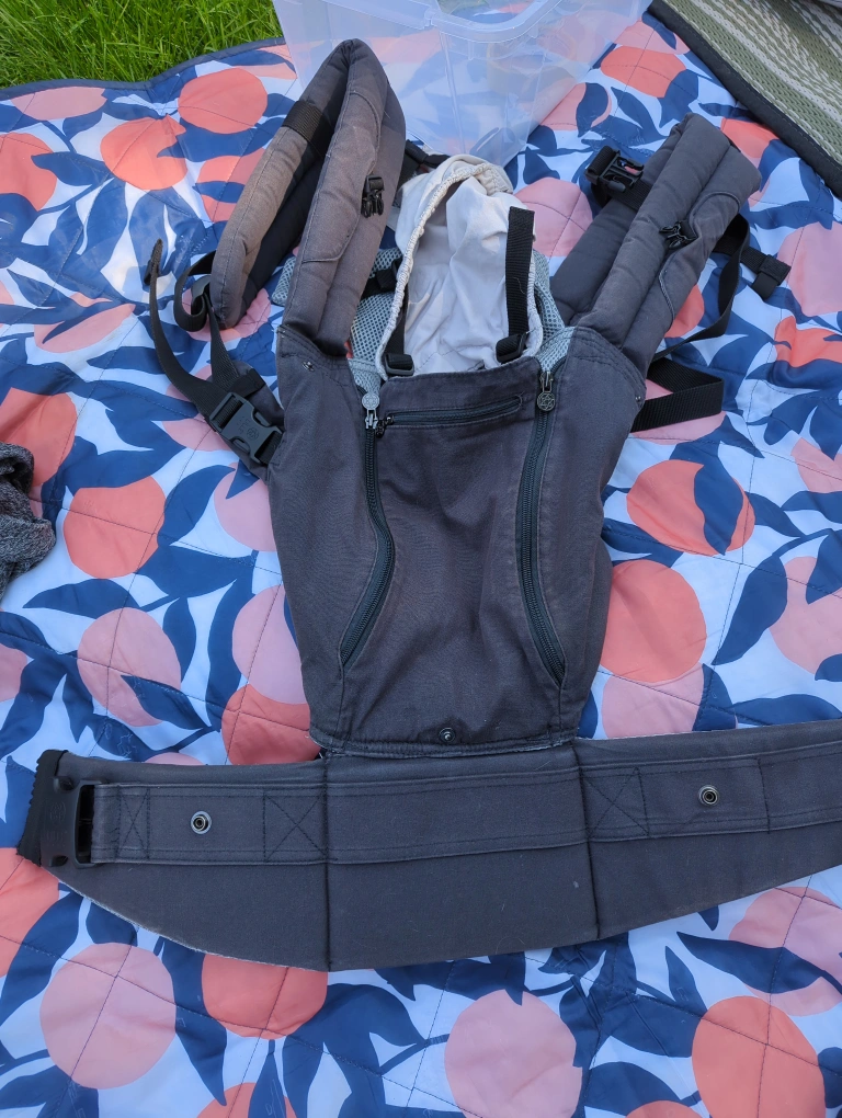Selling a gently used Lille baby carrier in grey. It's in great shape and ready for a new little one! This carrier is perfect for keeping your baby close and comfortable while you're on the go