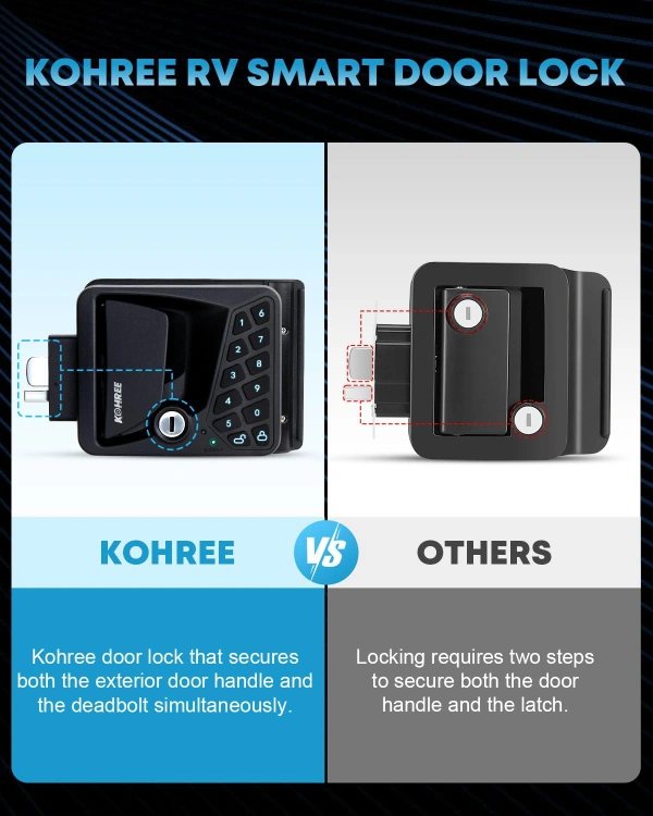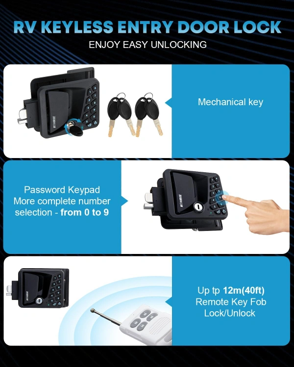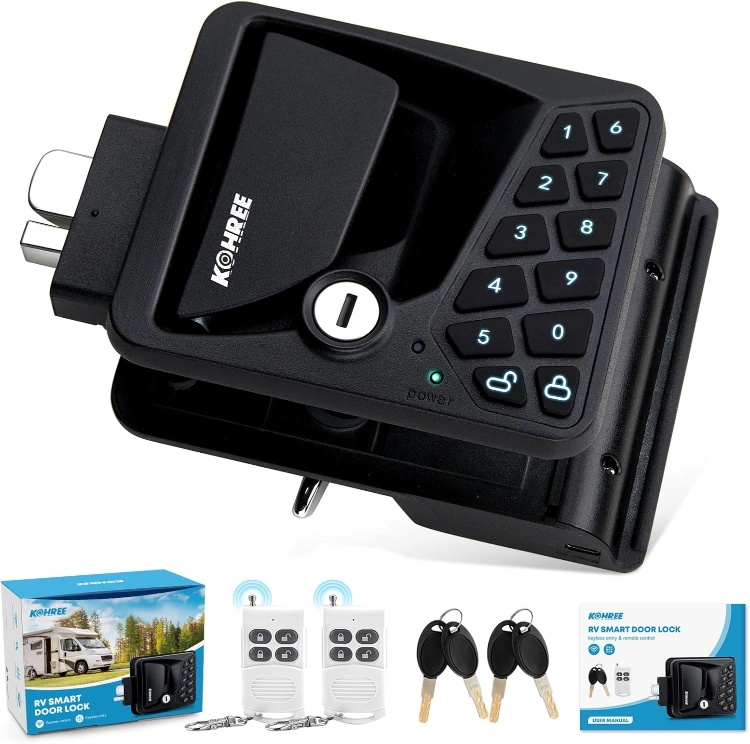 RV Door Lock Keyless Entry, 3-in-1 RV Door Locks Replacement, Remote Controller & Keypad & Key-Fob, 100% Metal Door Locks for Camper Travel Trailer, Camper Latch Replacement Door Latch Handle, Brand New in the Box/Sealed Sells for $150+tax on Amazon https://www.amazon.ca/dp/B0FCRF5X8K Features: RV KEYLESS ENTRY DOOR LOCK: With Kohree RV door lock, you can unlock via the password keypad or the remote key Fob, eliminate the hassle of carrying keys. Remote key Fob is supported up to a distance of 12m/40ft. SAFE & STRONG: The RV door lock replacement is IP66 waterproof and crafted from 100% metal. It features a Grade C anti-theft and anti-pry lock cylinder to ensure optimal security performance. VERSATILE DOOR LOCK: The RV keyless entry door lock fits most RV doors with an opening size of 3.75"x 2.75"x 1.5". Please measure your RV door opening size before purchasing. It can be widely applied in travel trailers, campers, trucks, horse trailers, cargo haulers, etc. (Note: not for glass doors) EASY TO INSTALL: The RV door lock just need one step to secure both the exterior door handle and the deadbolt simultaneously, and than simply requires you to connect the wires and then screw in to secure onto the RV door. Most installations take ten minutes or less to complete, making this a stress-free RV and trailer accessory option you can set up yourself. SUITABLE FOR OUTDOOR USE: The travel trailer lock with an LED back-lit keyboard, you can easily enter the password at night.