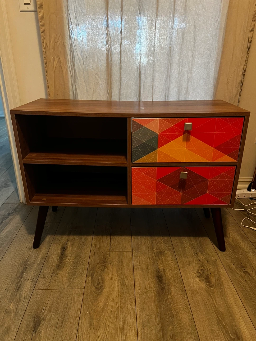 What was listed as rainbow panel Duffy TV Stand for TVs up to 32" by Mercury Row is now a discontinued style on Wayfair. I’ve loved having this piece in my home. I’m only selling because I have no room with a new piece of furniture that’s coming in. Well cared for with some minor candle staining on the top. Paid $160 with taxes. Pick up in St. Lawrence market/distillery District neighbourhood.