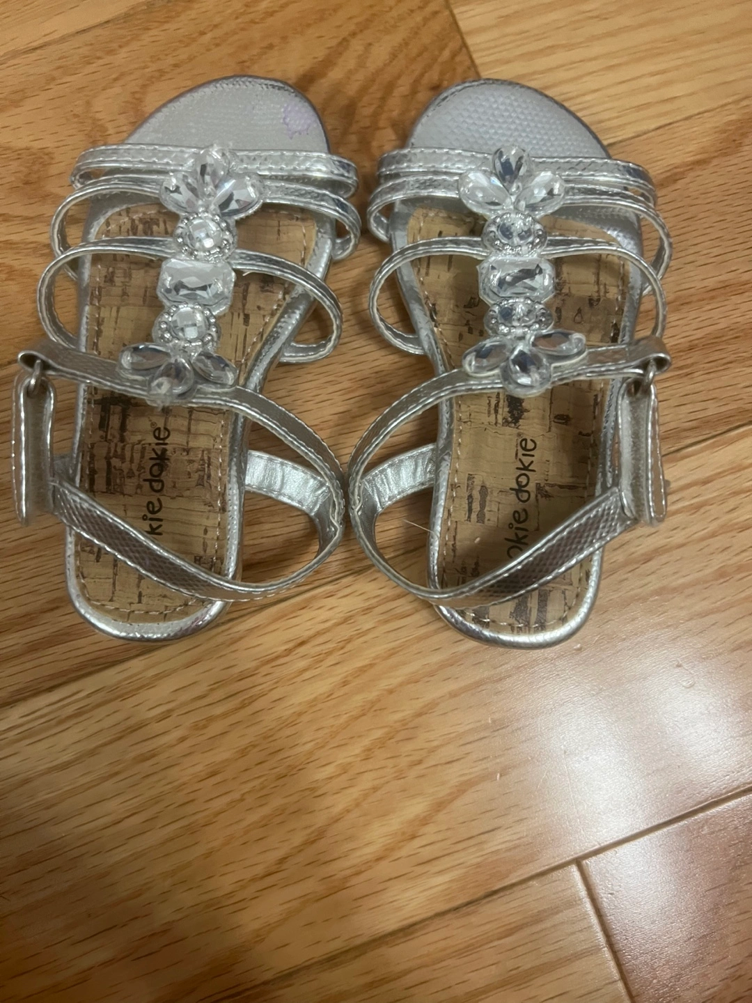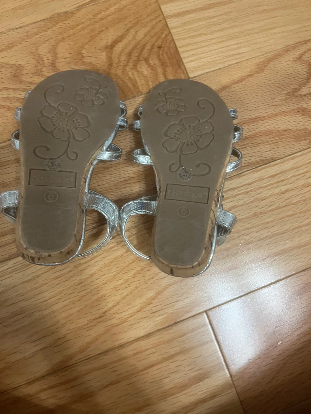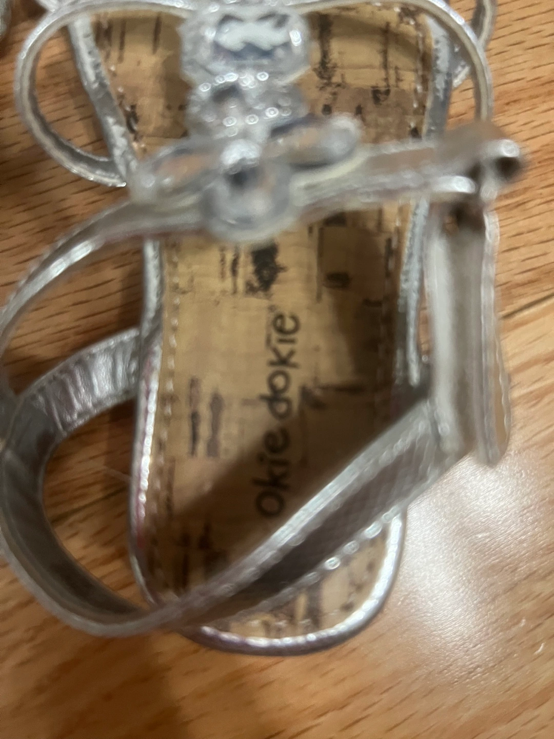 These adorable Okie Dokie sandals are perfect for your little one! They're a cute silver colour and in size 6. Great for dressing up or just adding a bit of sparkle to any outfit!