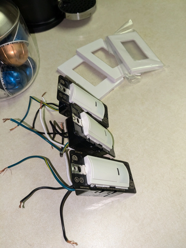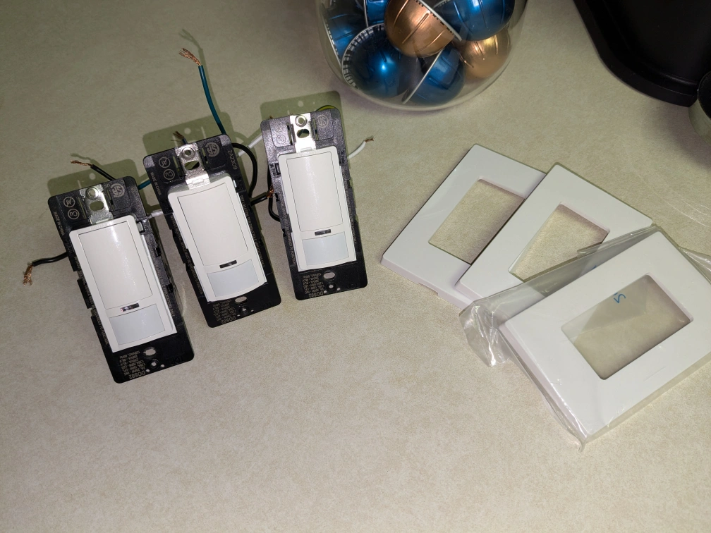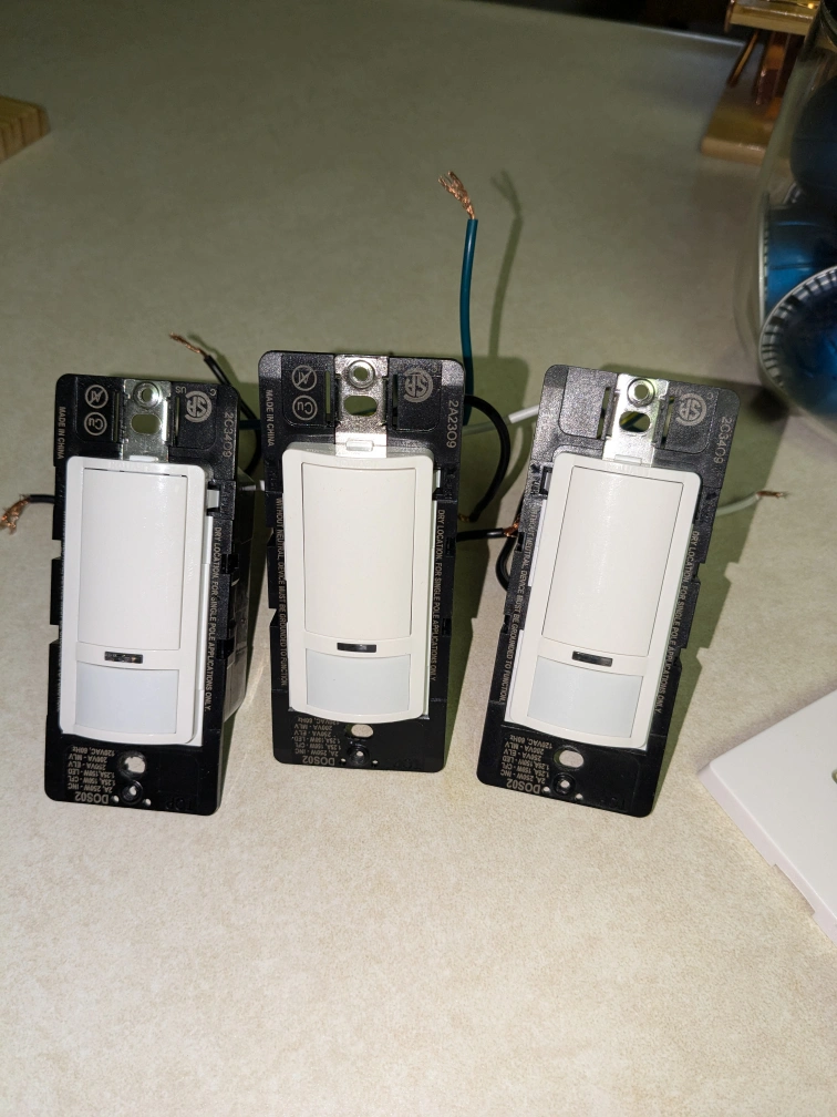 Selling a pack of three motion sensor light switches. They appear to be in good condition and come with the white faceplates. Great for saving energy!