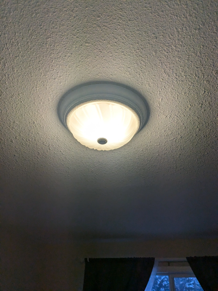 Selling a flush mount ceiling light fixture. It's white and in good condition. Perfect for adding some light to any room!