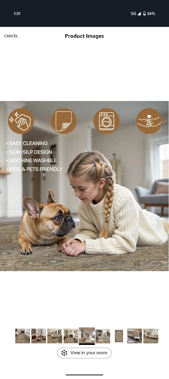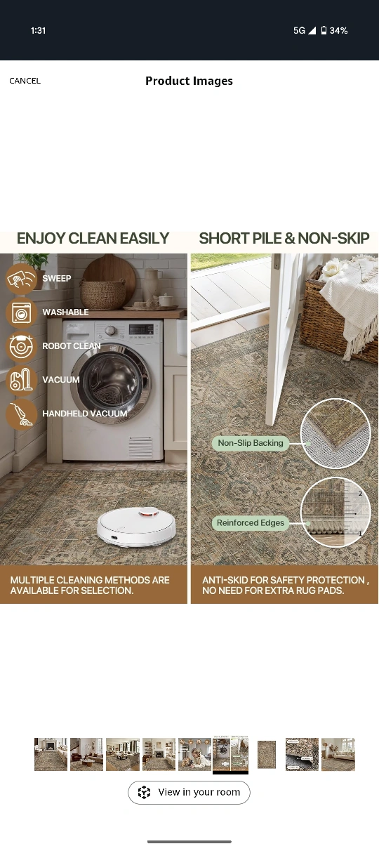 Looking to add some warmth to your living space? This area rug is perfect! - Easy to clean (machine washable) - Non-slip design - Kids and pets friendly - Low pile surface - Durable edge - Non-slip backing - Multiple cleaning methods available (sweep, washable, robot clean, vacuum, handheld vacuum)
