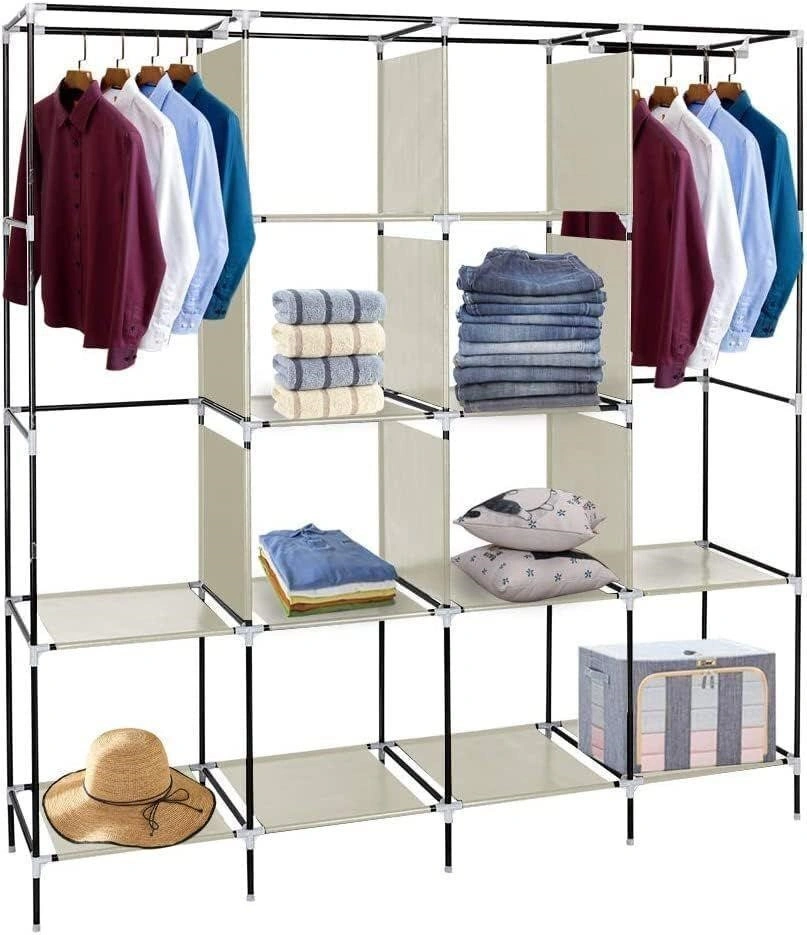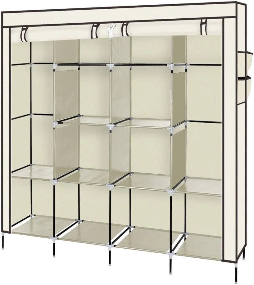 This portable clothes closet wardrobe is perfect for adding extra storage space! It's easy to assemble and disassemble, making it great for small spaces or temporary storage needs. The wardrobe features multiple shelves and hanging space to keep your clothes organized. It's in great condition and ready to use