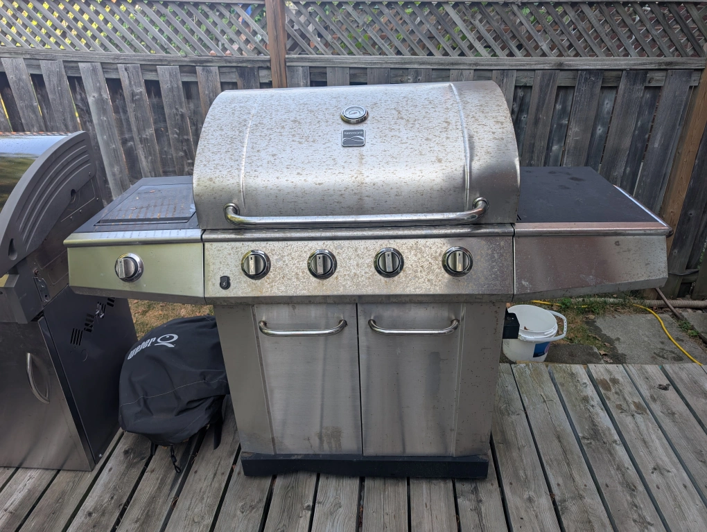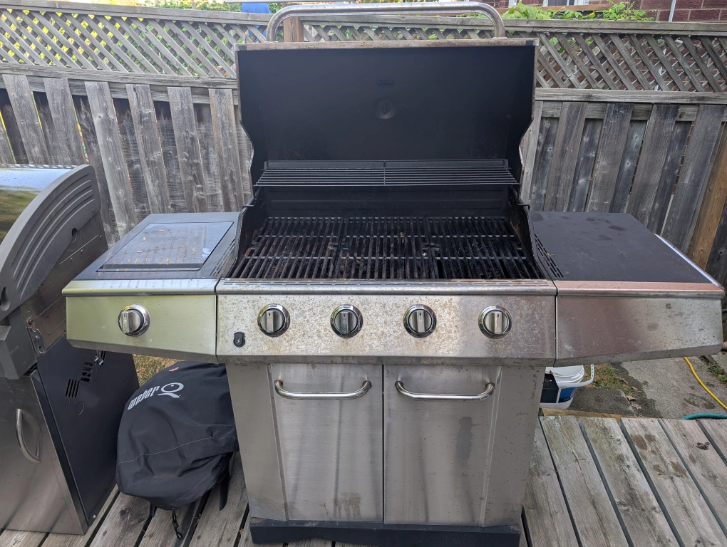 Kenmore barbecue with 4 main burners and a side burner. All burners work. The grills are all in ok condition. The flavour bars on the right side work but should probably be replaced. Left side works fine so essentially three burners function well - though I personally use all burners and grates. The automatic igniter no longer works but burners can easily be ignited using a match or a candle starter. Temperature gauge works. The unit is large and will require two (or more) people to get from our backyard to front driveway. If you're reading this, the BBQ is still available. Pick-up only in Markham / Unionville about 800 metres west of Markville Mall (Highway 7 and Kennedy Road). Couperthwaite Crescent