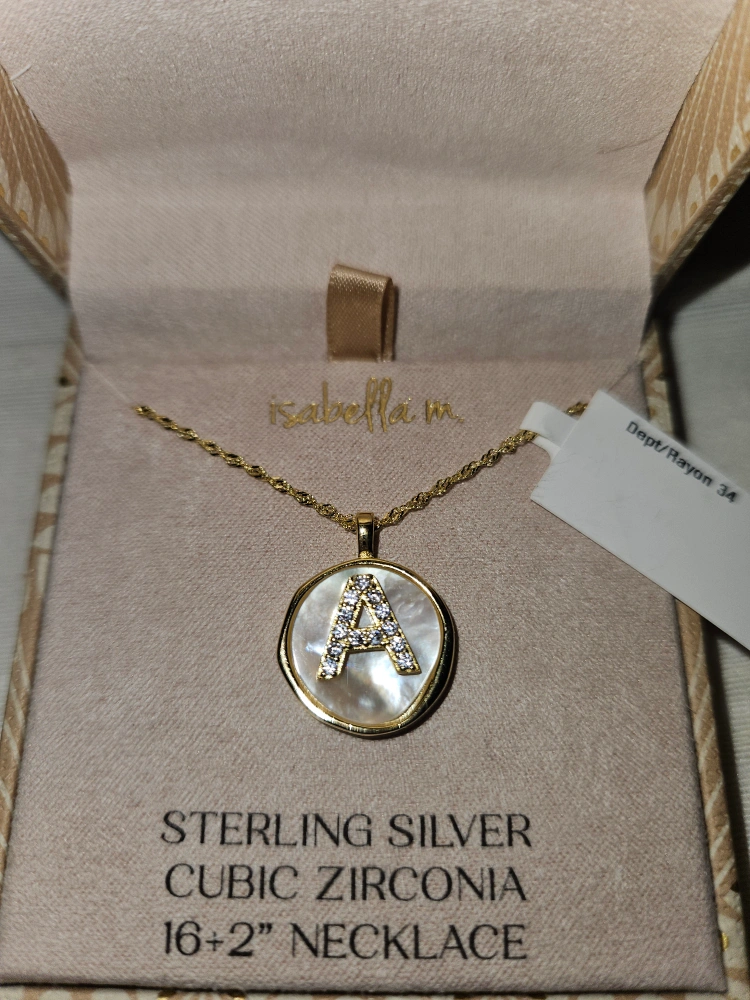 Selling a cute Isabella M. necklace! It features a sterling silver and cubic zirconia initial 'A' pendant on a 16+2" chain. Comes in its original box, ready to wear or gift