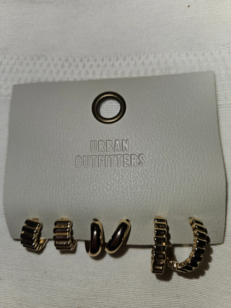 Here's a set of earrings from Urban Outfitters! It includes a variety of gold-toned hoop and stud styles. Perfect for adding a touch of shine to any outfit (New Brand)