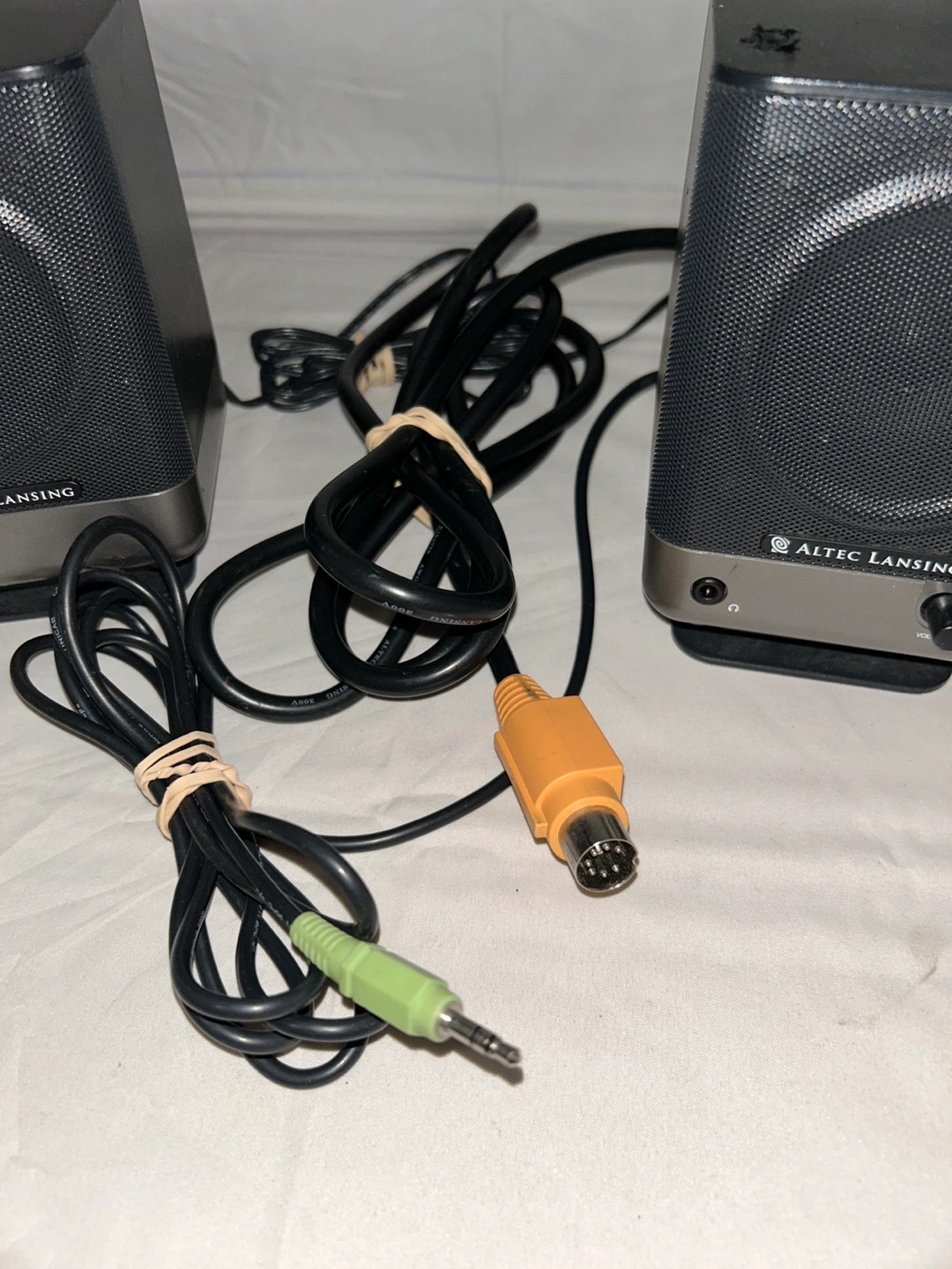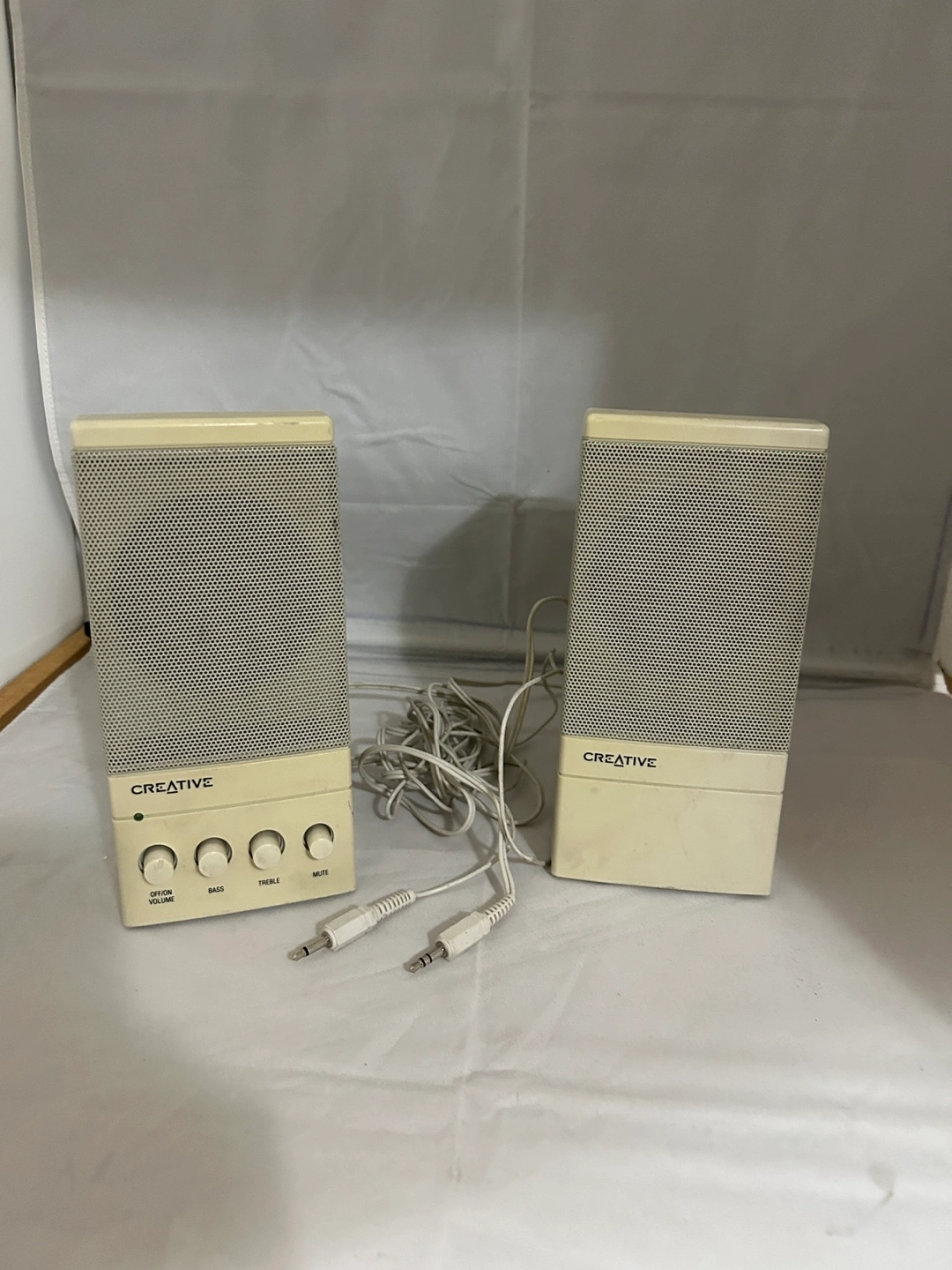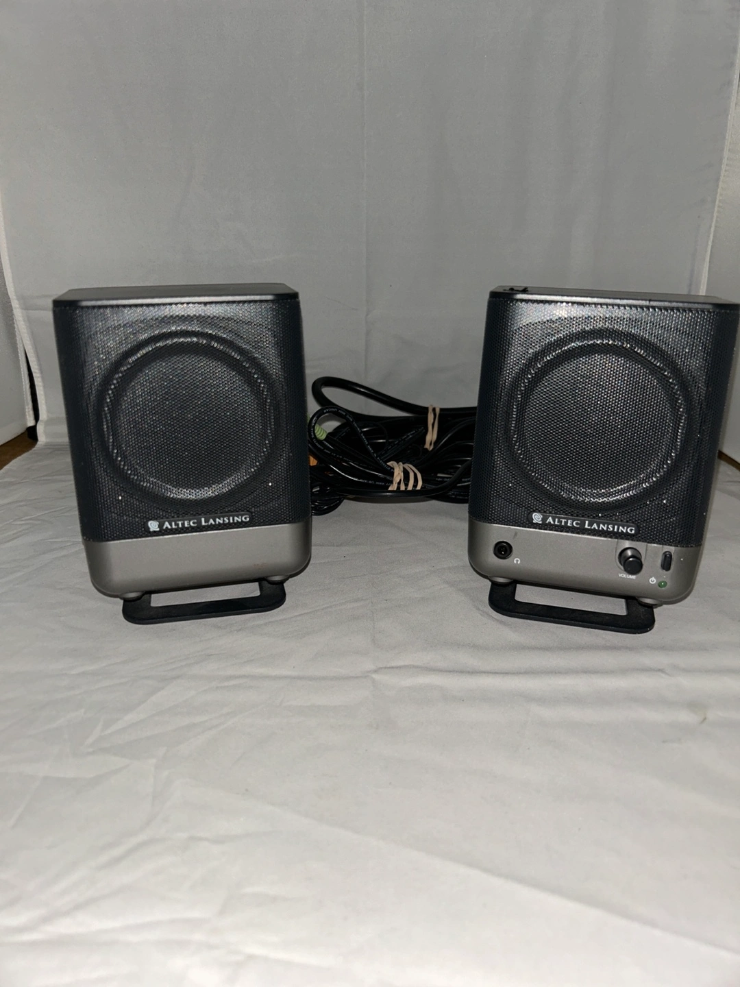 Selling a set of Altec Lansing and Creative Sound speakers. They're in good condition and perfect for your computer or audio setup. Comes in headphone / audio jack connection. Great for movie props.