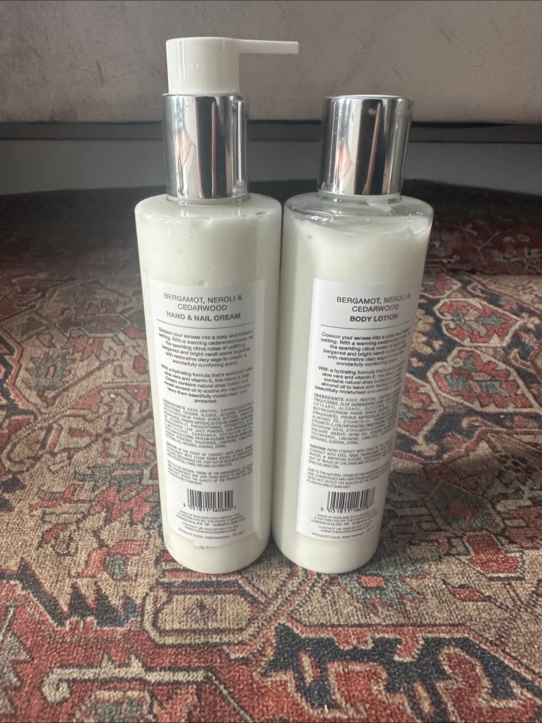 Selling a set of The White Company Bergamot & Cedar lotions! One is hand and nail cream, and the other is a body lotion. Both are 250ml and smell lovely