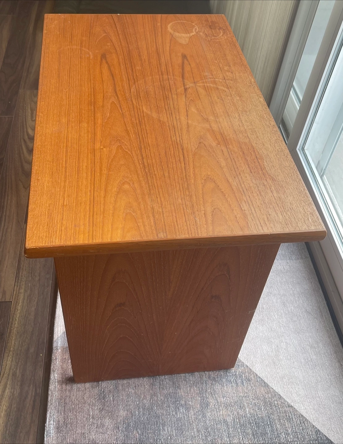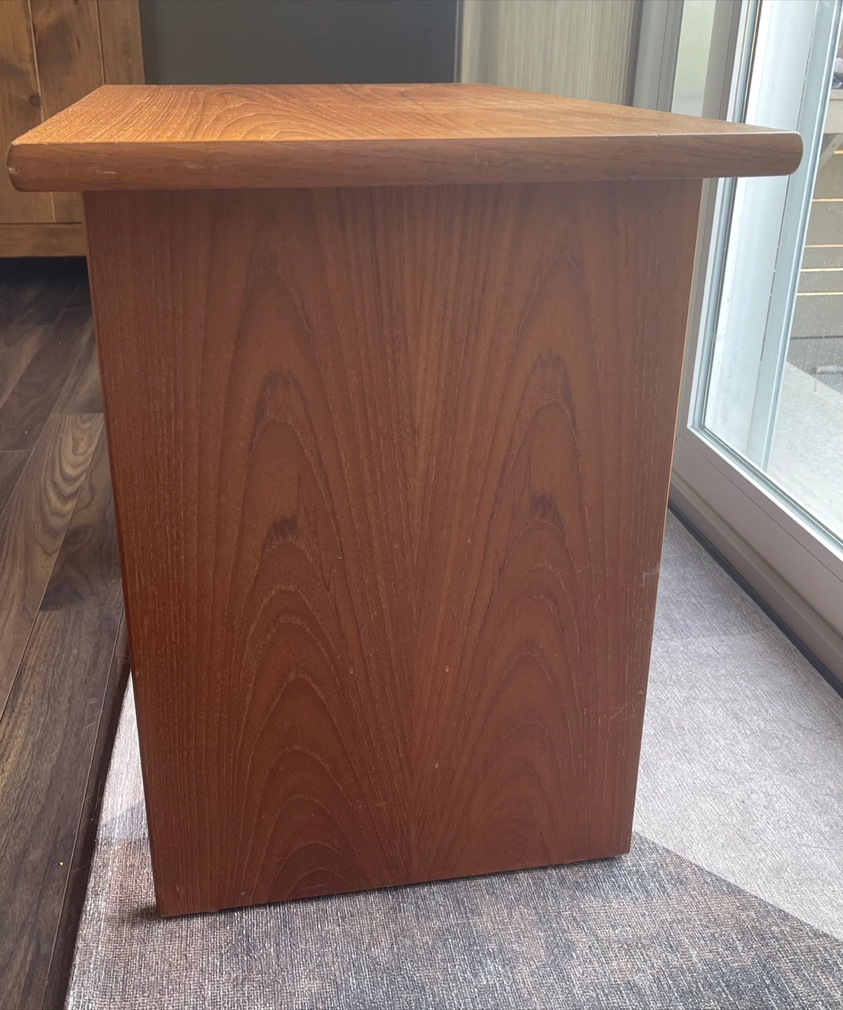 Classic mid-century modern teak side table in excellent vintage condition. Features clean lines, rich wood grain, and sturdy construction. A perfect accent piece for any modern or retro space.