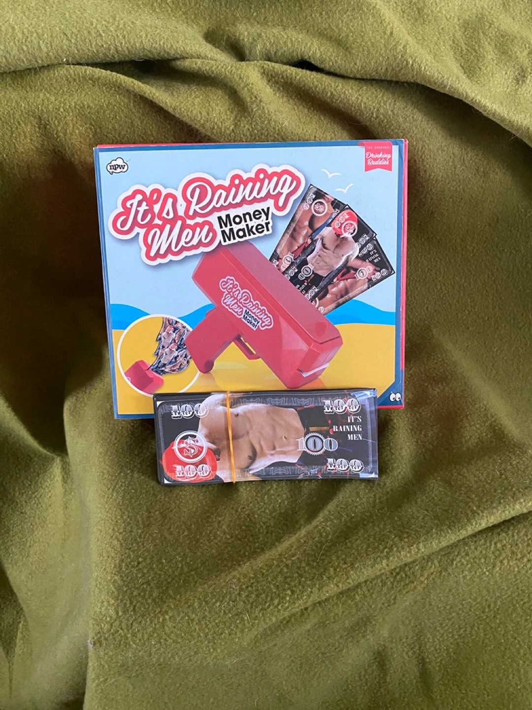 Get ready to make it rain with this It's Raining Men Money Maker! This fun toy is perfect for parties and guaranteed to bring some laughs. Comes with the box and some play money.
