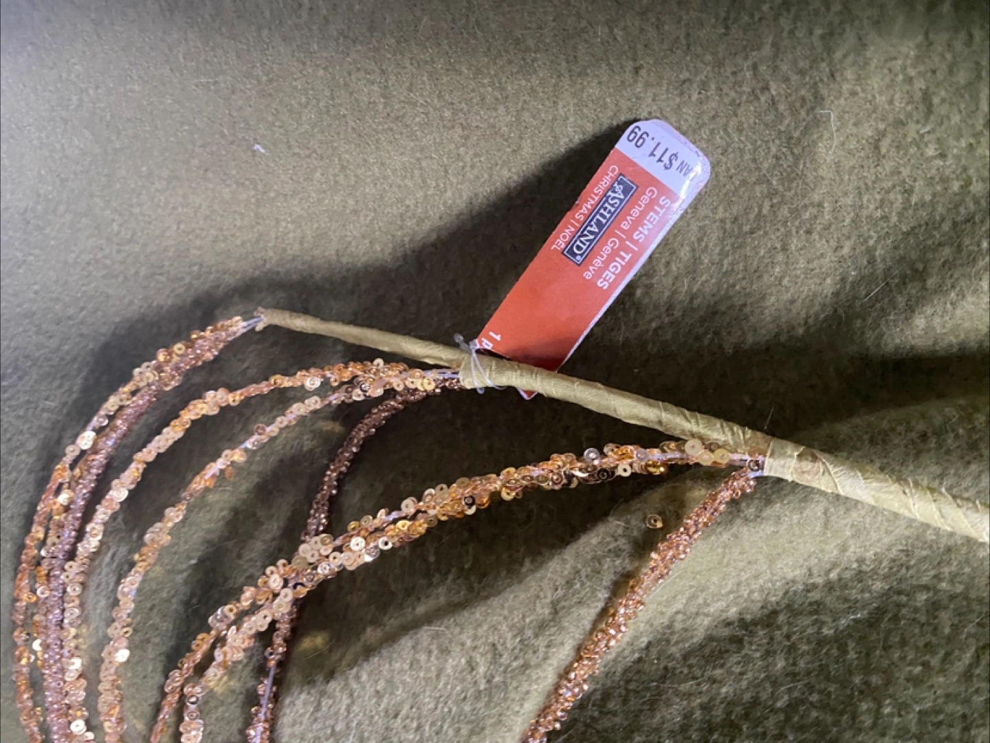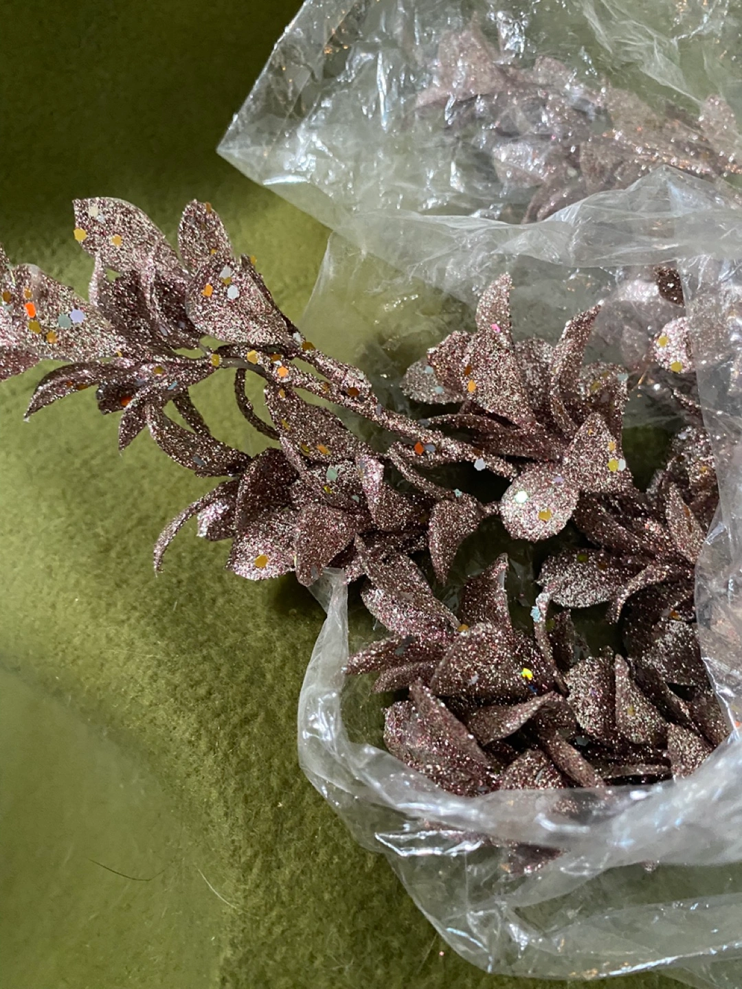 These glittery ROSE GOLD leaf stems are perfect for adding a touch of sparkle to your Christmas or Wedding decorations! There are two different types, so you can mix and match to create a unique look. Originally priced between $5.99 and $9.99, they're a great deal! Price is $5/branch. Non smoking homed