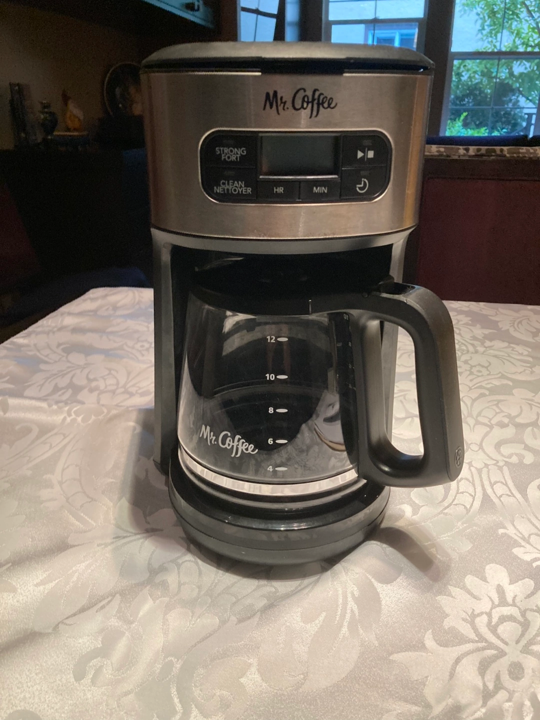 I'm selling a Mr. Coffee (made by Sunbeam) 12-cup programmable coffee maker. It's in great shape and ready to brew your favourite coffee! It has a strong brew selector and a clean cycle to keep it working like new. Comes with user manual and a reusable filter basket.