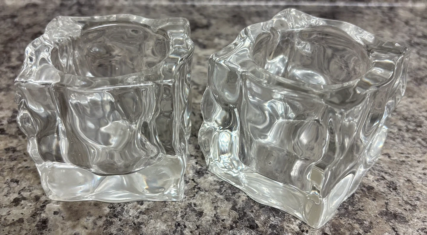 Set of three decorative LED candles, perfect for adding a warm glow to any room! They feature a lovely glittery tree design. The candles are battery operated. Needs 2AA for each, not included. Other one has a tea light candle Both sets are $10.00 each Single, new candles $2.00 each Margarine tub, all same tea light candles $5.00 Small Square Glass Candle Holders, 2 1/2 inches roughly $10.00 All as is, exact cash only More info in photo