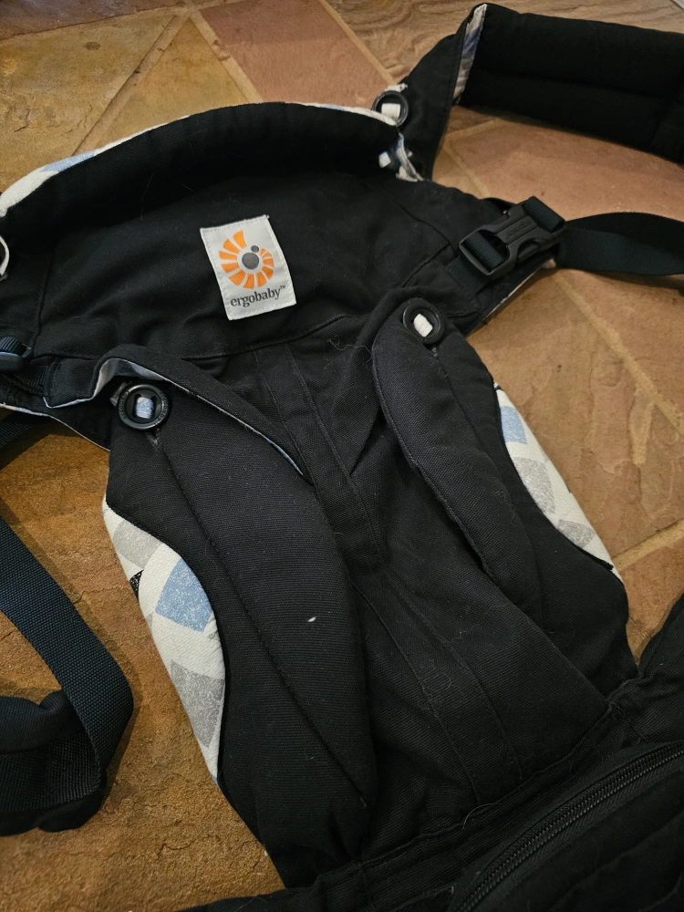 Selling an Ergobaby baby carrier in great condition! It's black with a geometric pattern on the inside. This carrier is designed to comfortably and safely carry your little one as they grow. It fits babies from 20 in / 50.8 cm to 28 in / 71.1 cm.