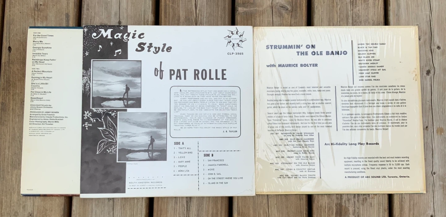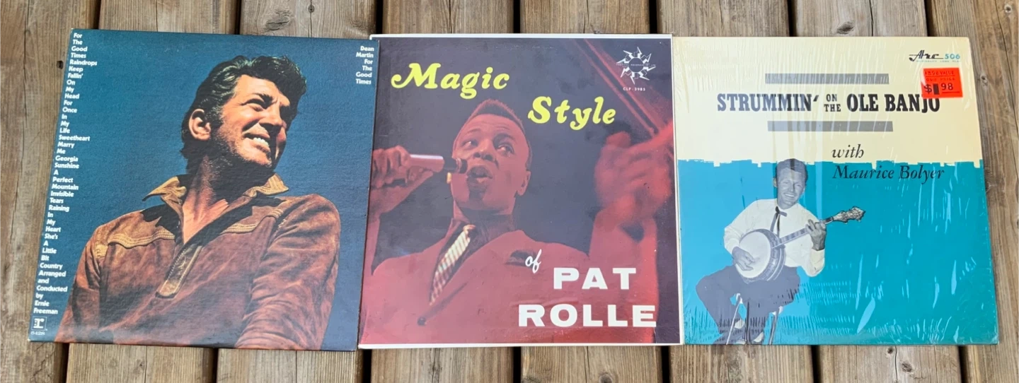 Selling a set of three vintage vinyl records. Includes Dean Martin, Pat Rolle - Magic Style, and Maurice Bolyer - Strummin' on the Ole Banjo. Great for collectors or anyone who enjoys classic tunes! Each $5 Or all 3 LP’S for $10