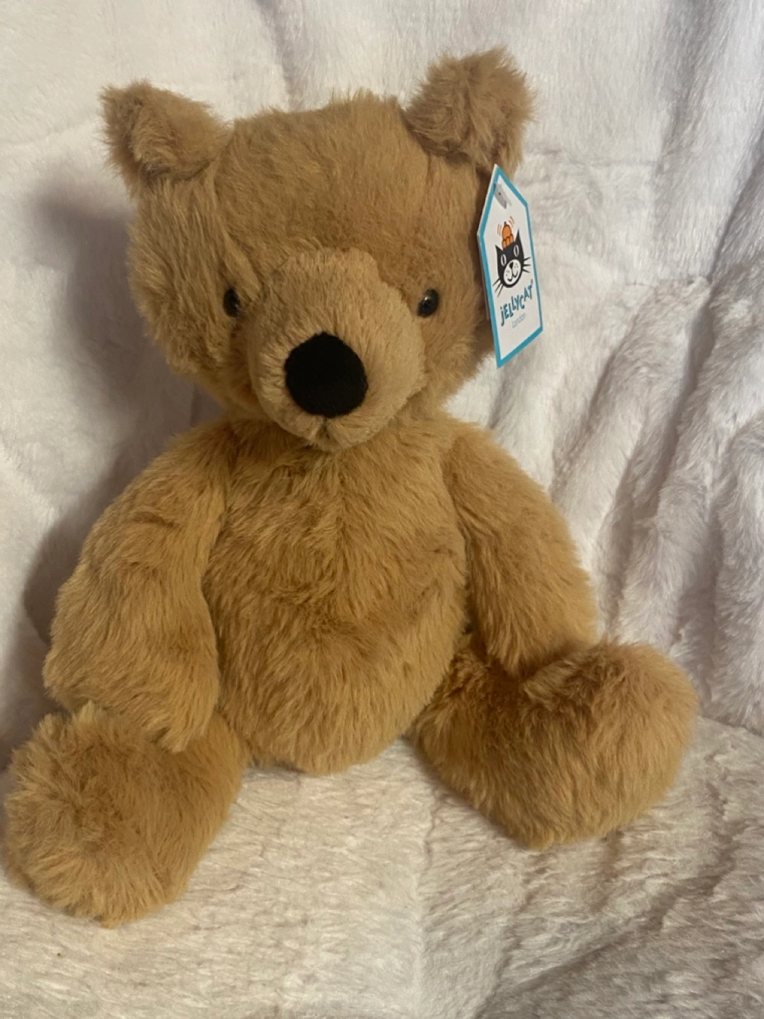 Selling a super cute NEW Jellycat teddy bear! It's in great condition and ready for a new home. This cuddly friend is perfect for kids or anyone who loves a soft plush toy. His name is Rufus and he measures 9.5” in Lenght. This adorable plush Jelly Cat bear is super soft and cosy. Never played with. Has tags attached. Price is Firm. Cash and pick up only, Cawthra and Lakeshore area in Mississauga.