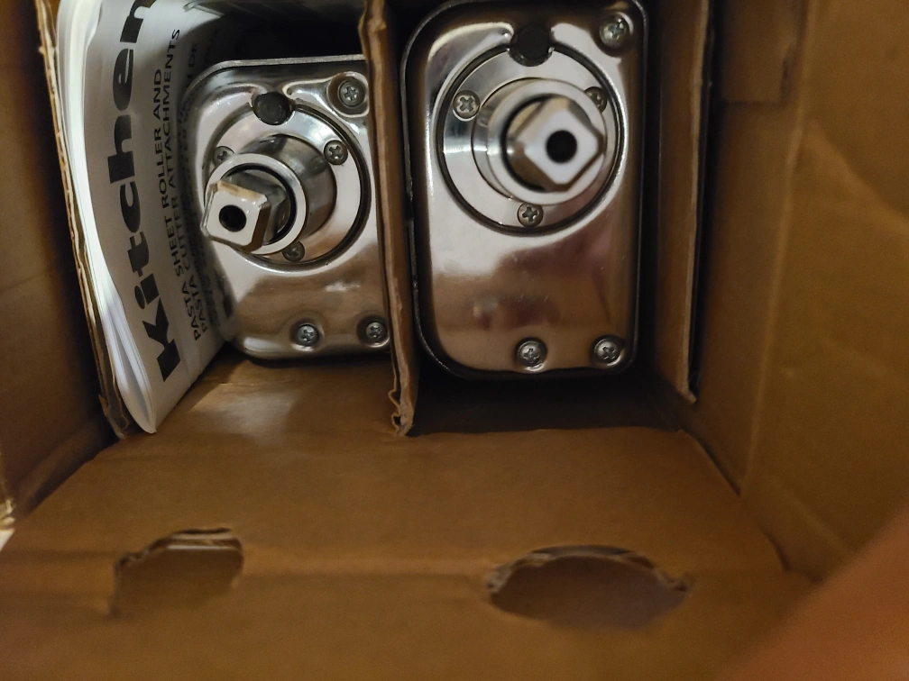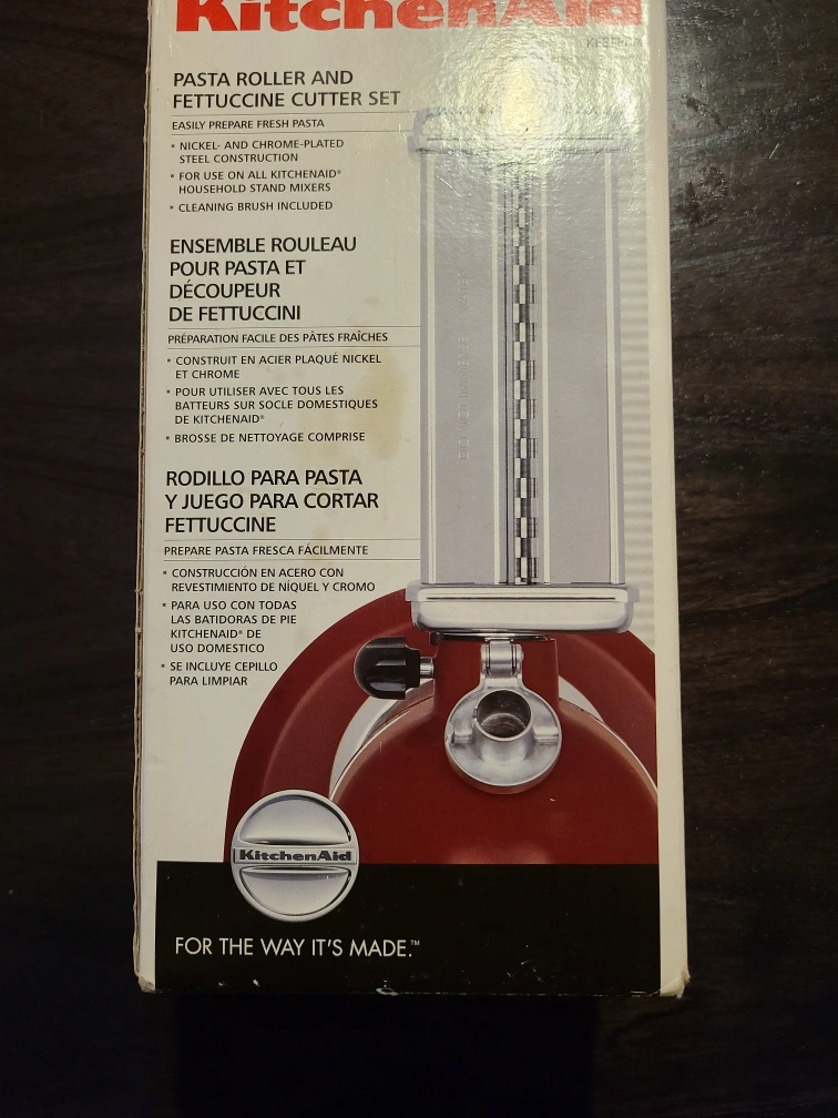 KitchenAid pasta roller and fettuccine cutter set for easily preparing fresh pasta. Durable and easy to use to create lasagna noodles or cut fresh fettuccine. Includes a cleaning brush for easy maintenance. Box included. SFPF HOME Looking for fastest pick up. Delivery not available. Brimley & Eglinton for pick up. No returns.