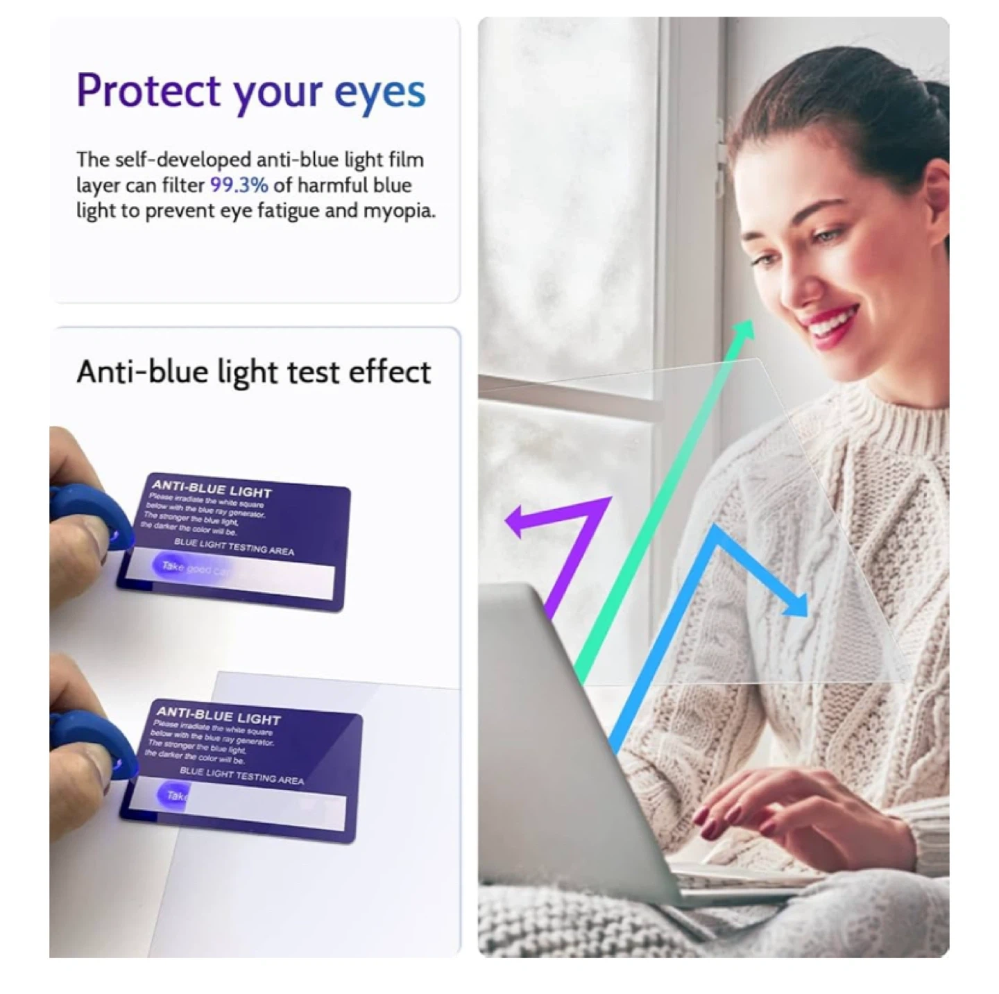 Protect your eyes with this anti-blue light screen protector! It filters 99.3% of harmful blue light to prevent eye fatigue and myopia. It also features anti-glare so you can feel the soft light even in direct sunlight. The high translucent material gives you a visual experience like the original screen
