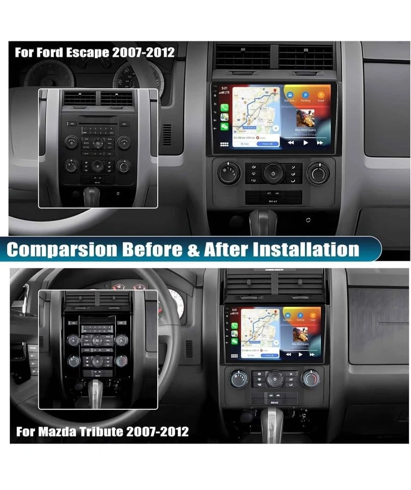 Android 13 car radio for Ford Escape 2007-2012/Mazda Tribute 2007-2012 with wireless/wired CarPlay & Android Auto. 9" car stereo with Mirror Link, BT, FM/RDS, EQ, GPS, WiFi, SWC + AHD backup camera, 2RAM - 64 ROM. Pickup in Oakville. FT- FE712 / A15-2-64