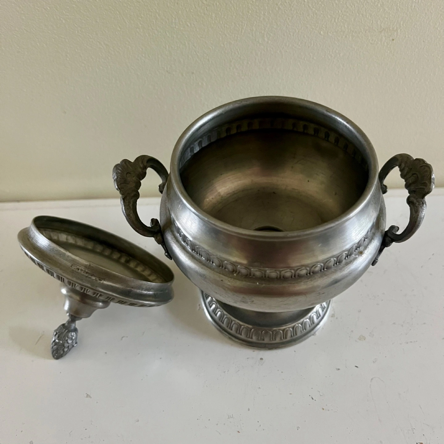 Vintage Italian Ariston Peltro 95% pewter lidded sugar bowl that's steeped in history. Though it shows signs of its age, this piece exudes a timeless charm. Pick up Montgomery. Cross-posted. Please see my other listings for more vintage treasures.